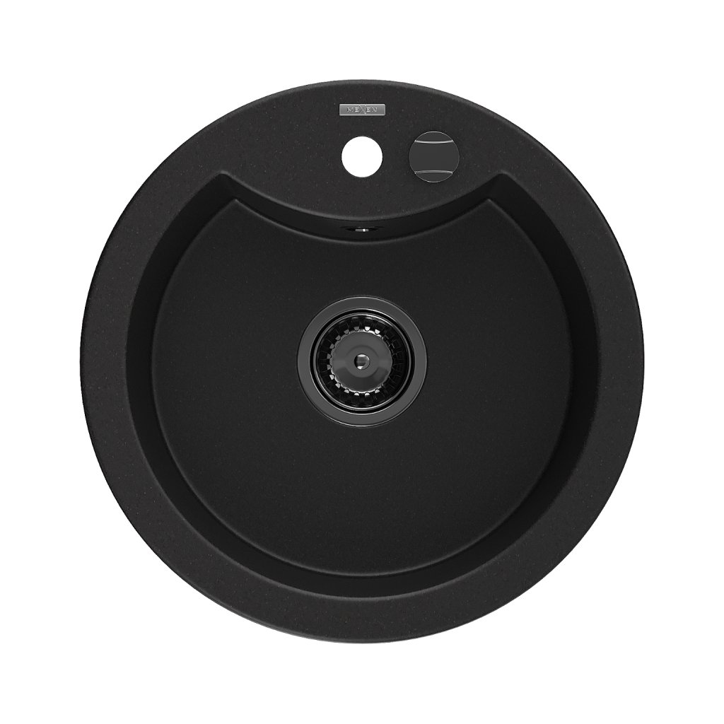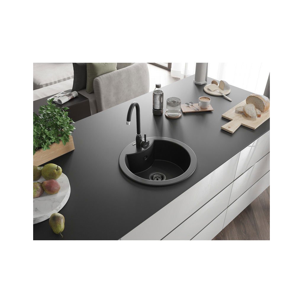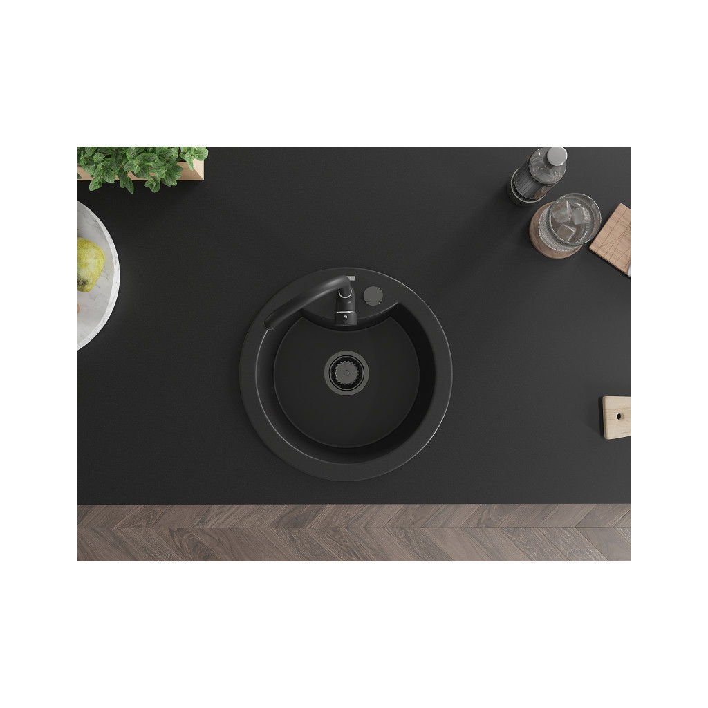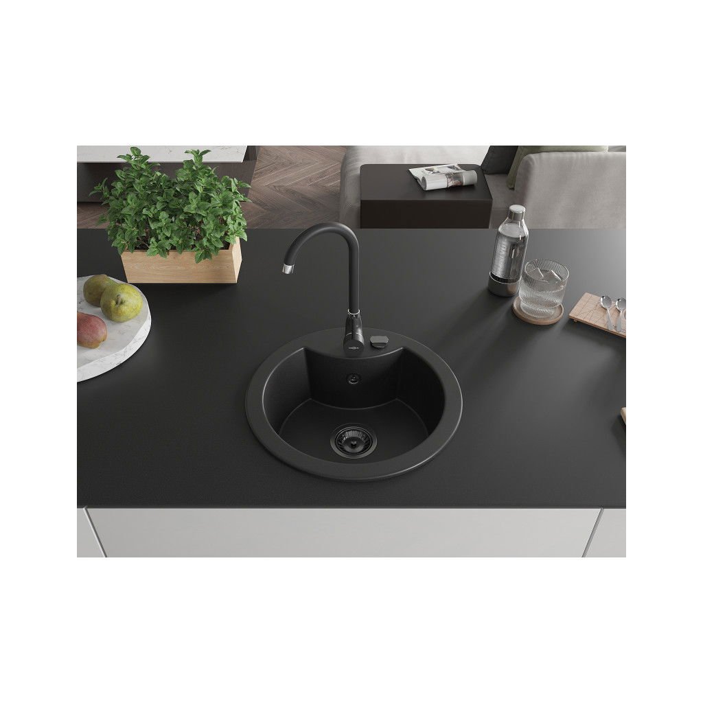 Mexen Diego, chiuvetă granit cu 1 cameră 488x488x167 mm, sifon negru, negru, 6512481000-77-B