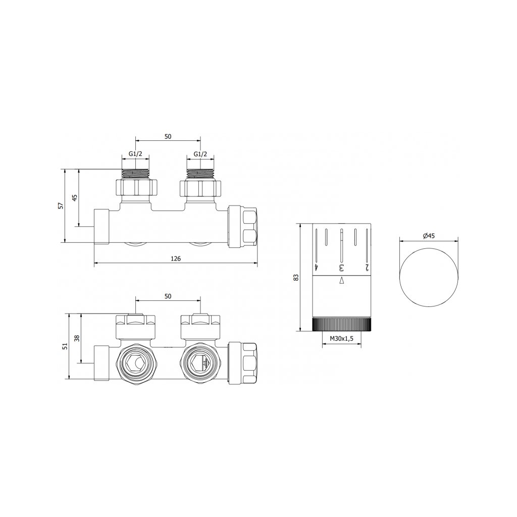 Mexen Duplex G05, set termostatic de colt, DN50, negru mat, W907-958-70