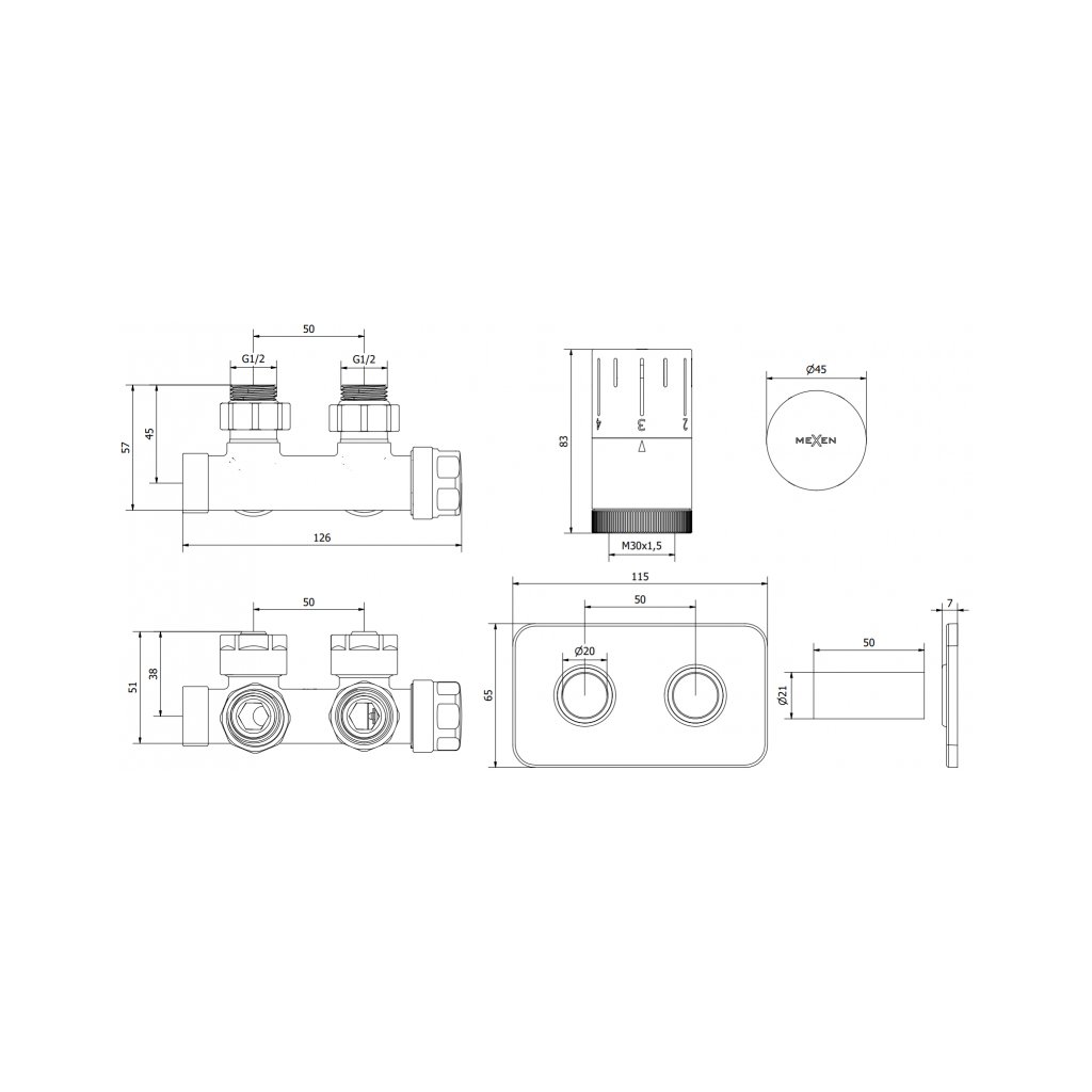 Mexen Duplex G05, set termostatic unghiular cu capac pătrat S, DN50, crom, W907-958-910-01