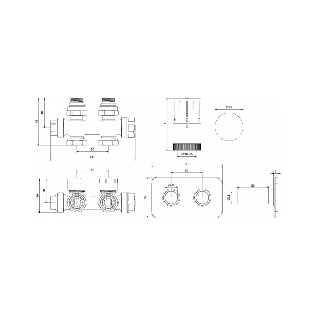 - Include fitinguri suplimentare pentru țevi multistrat 16x2 mm și fitinguri țevi din cupru 15 mm