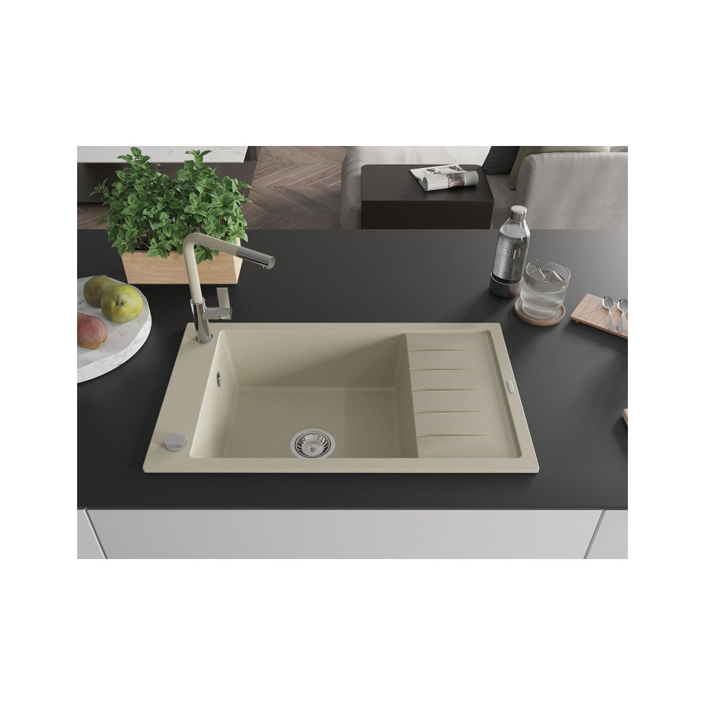 Mexen Elias, chiuveta granit 1 camera 795x480x200 mm si baterie chiuveta Flora, bej, 6511-69-670401-09