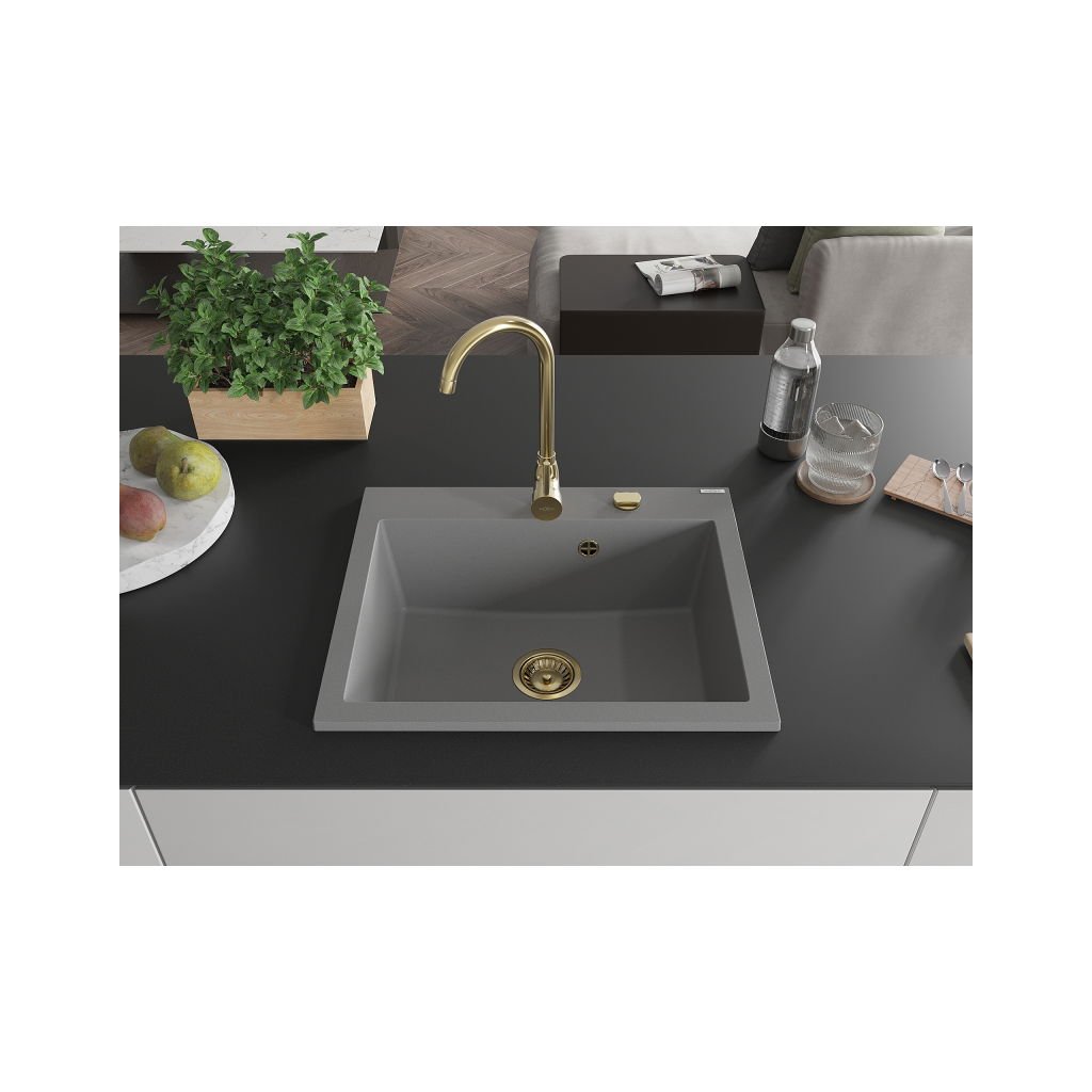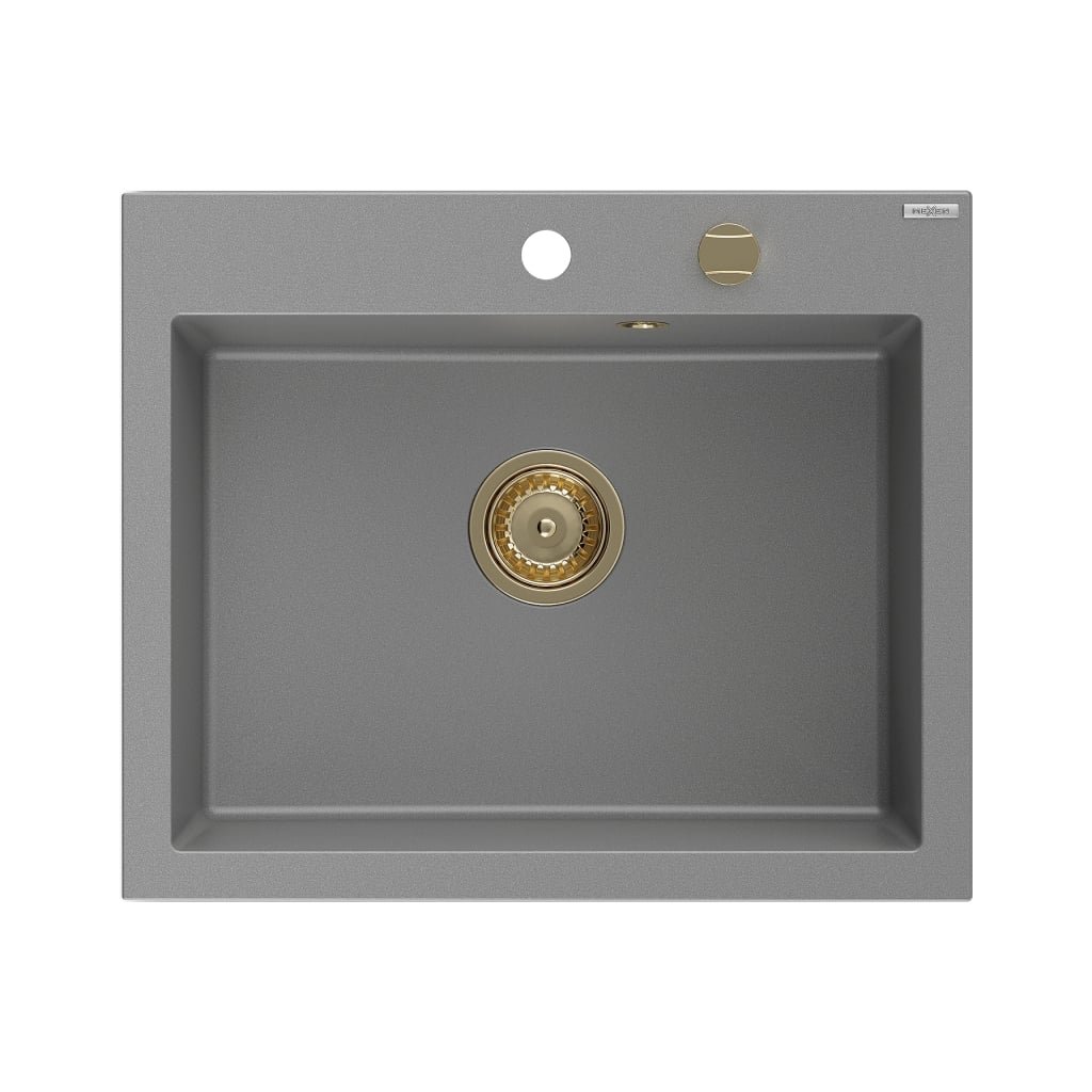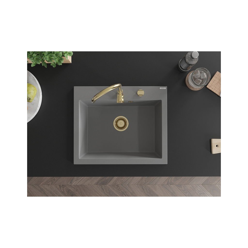 Mexen Elix, chiuvetă din granit cu 1 compartiment 600 x 500 mm, gri, sifon auriu - 6525601005-71-G