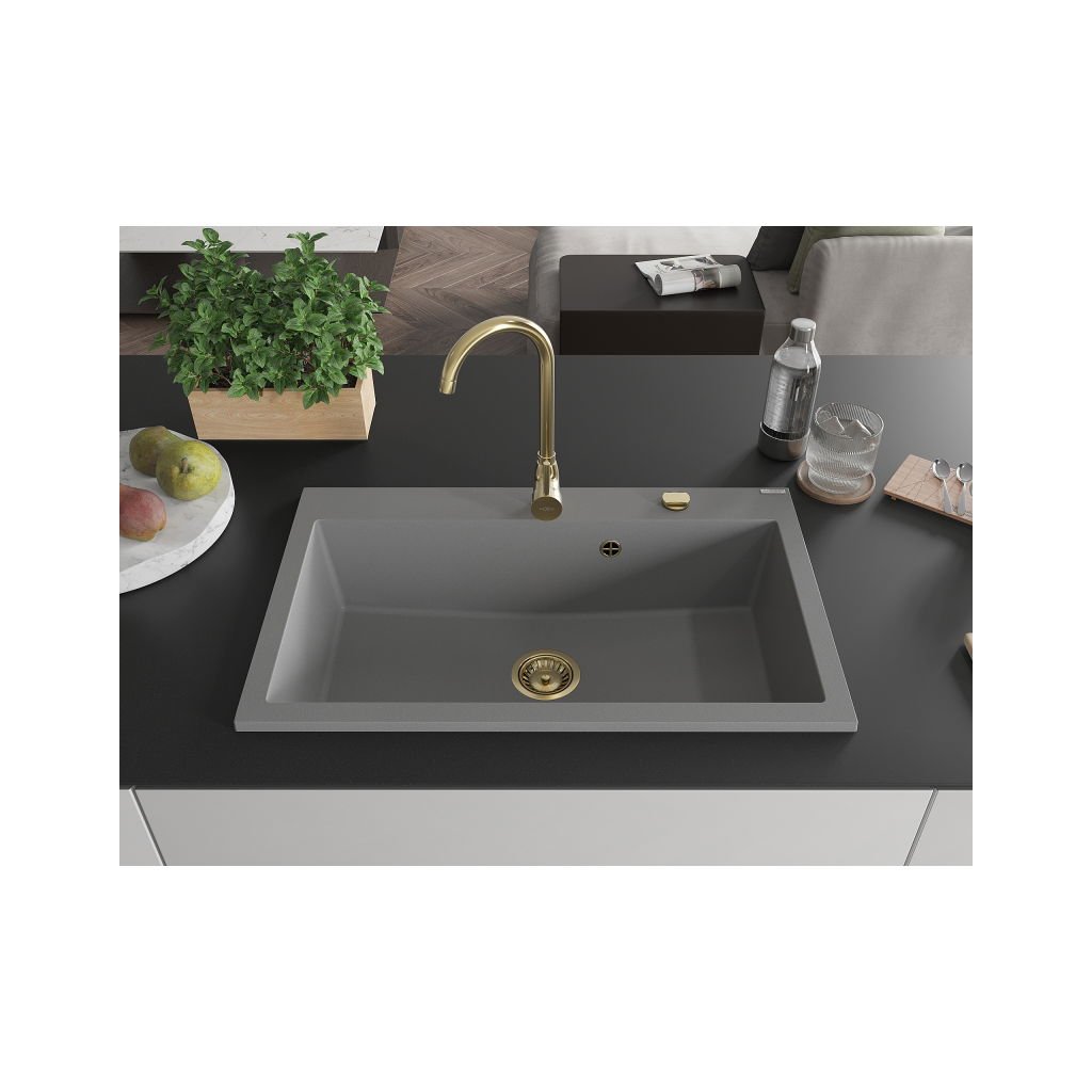 Mexen Elix, chiuvetă granit cu 1 vas 800 x 500 mm, gri, sifon auriu, 6527801005-71-G