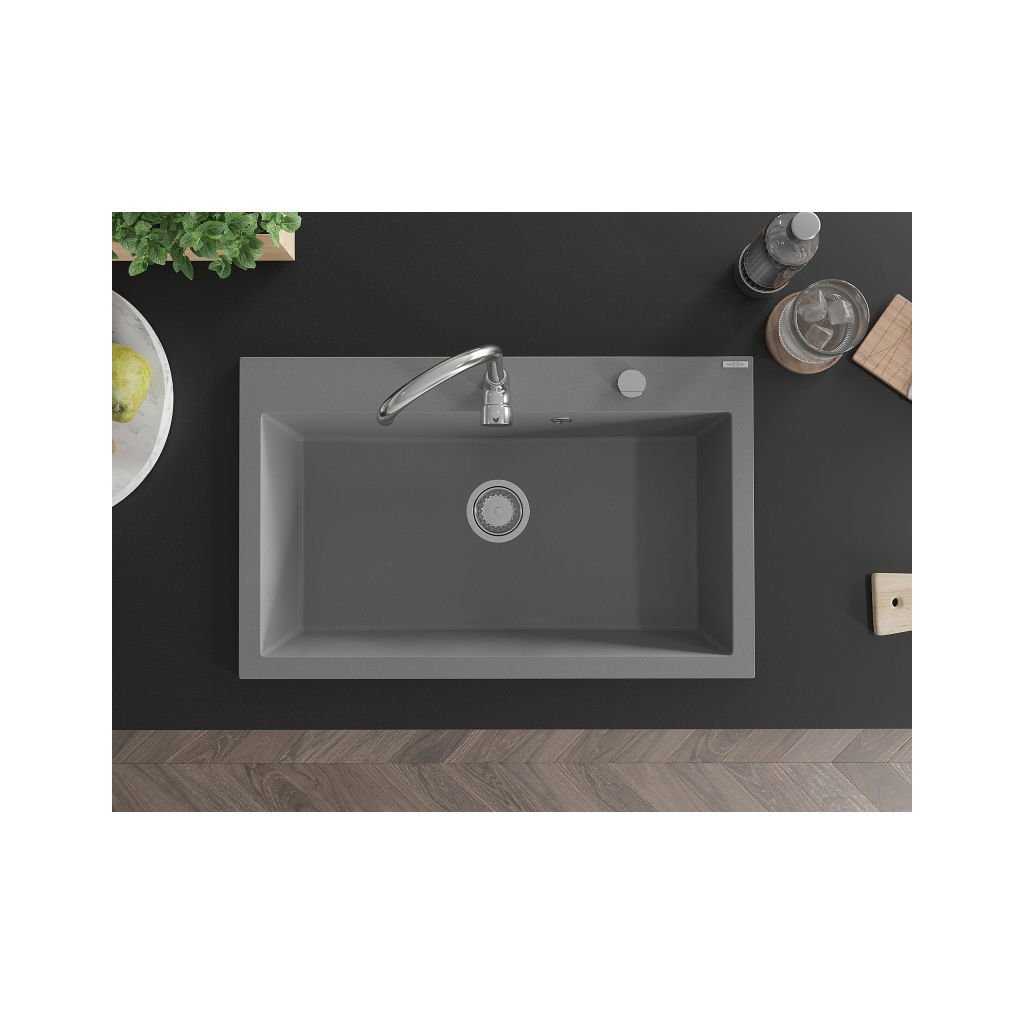 Mexen Elix, chiuvetă granit cu 1 vas 800 x 500 mm, gri, sifon crom, 6527801005-71