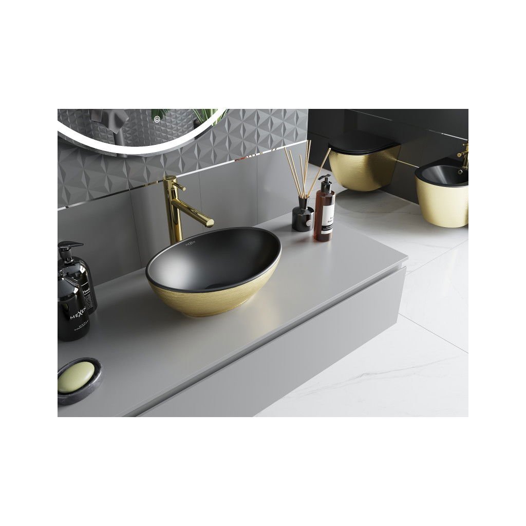 Mexen Elza, chiuveta blat ceramica 405 x 330 mm, model structurat negru mat-auriu, 21014027