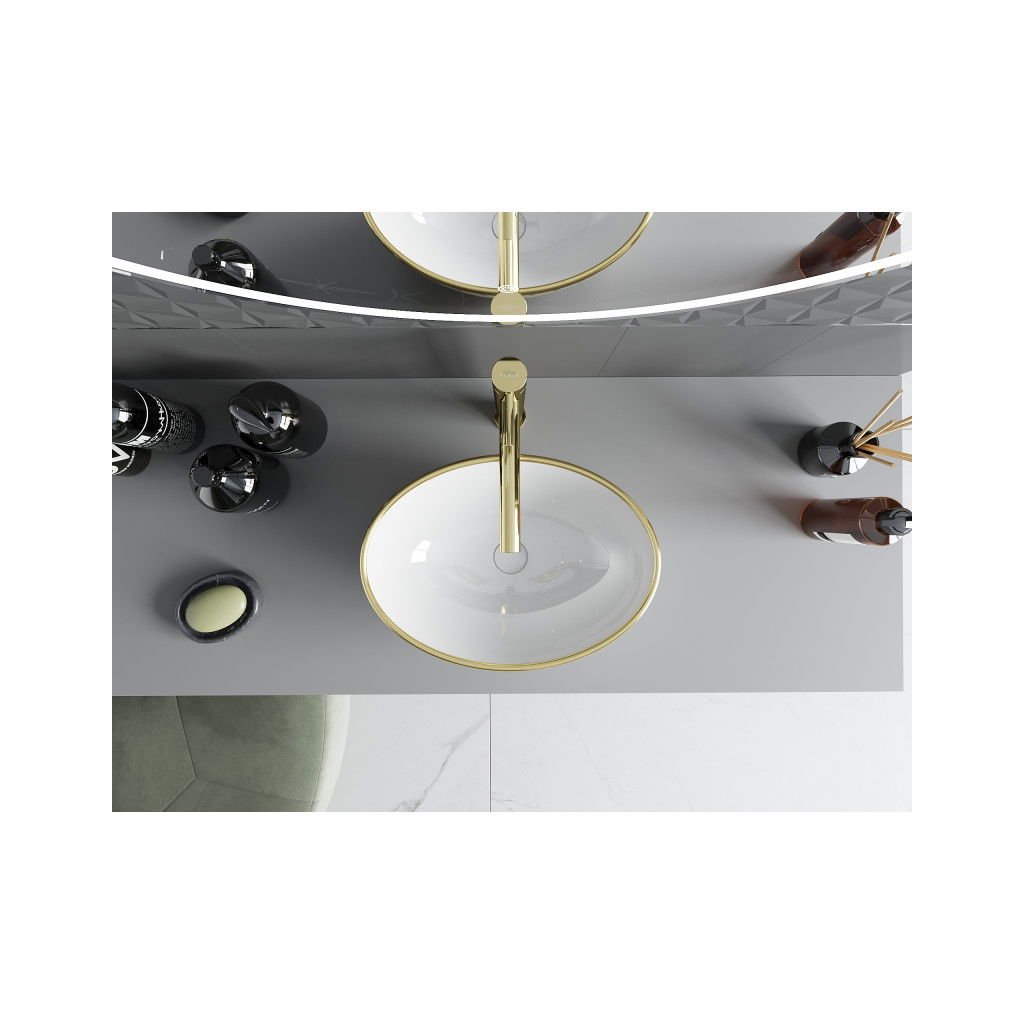 Mexen Elza, chiuveta ceramica blat 405 x 330 mm, model alb-auriu, 21014009