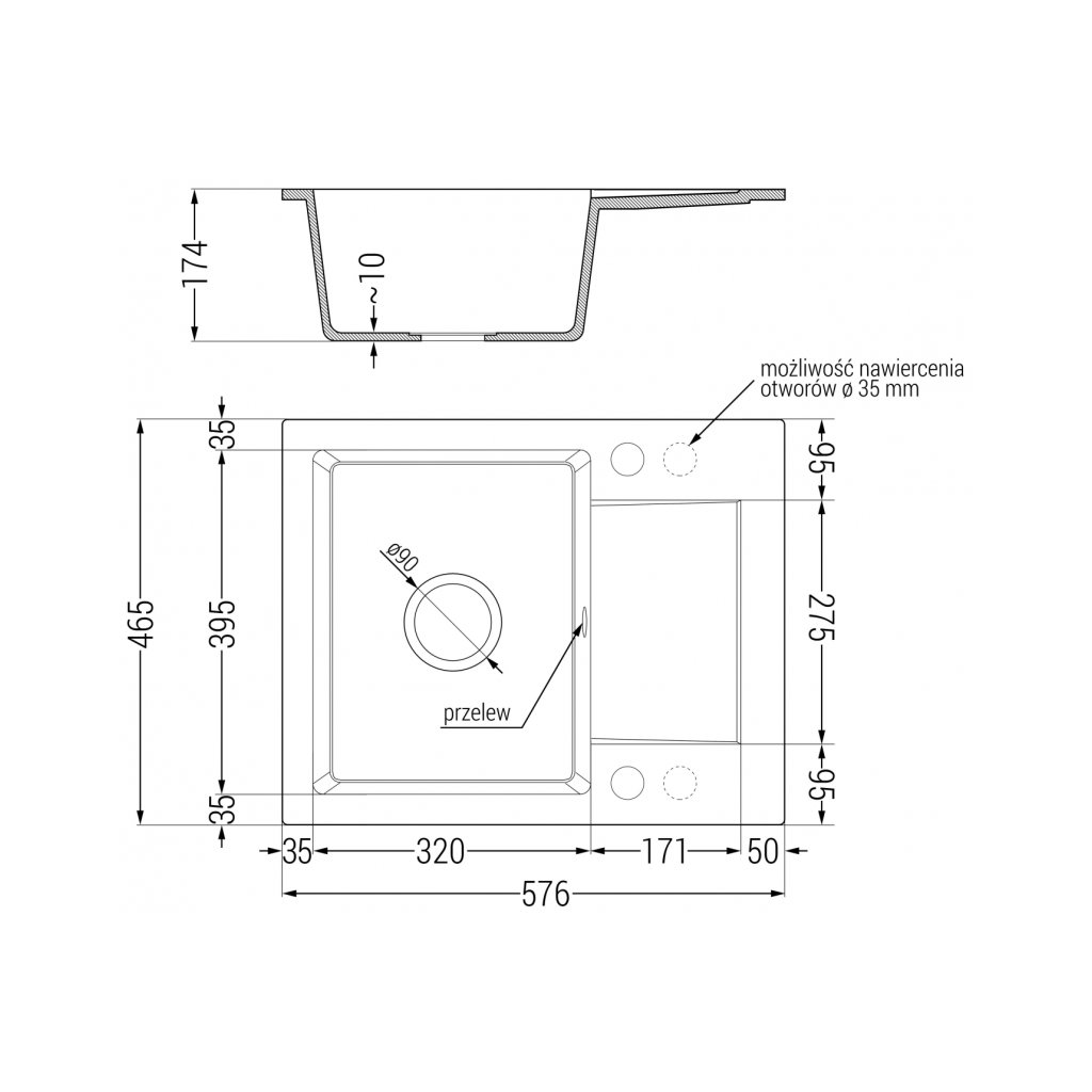 - Chiuvetă cu două fețe - zona de depozitare poate fi pe dreapta sau pe stânga