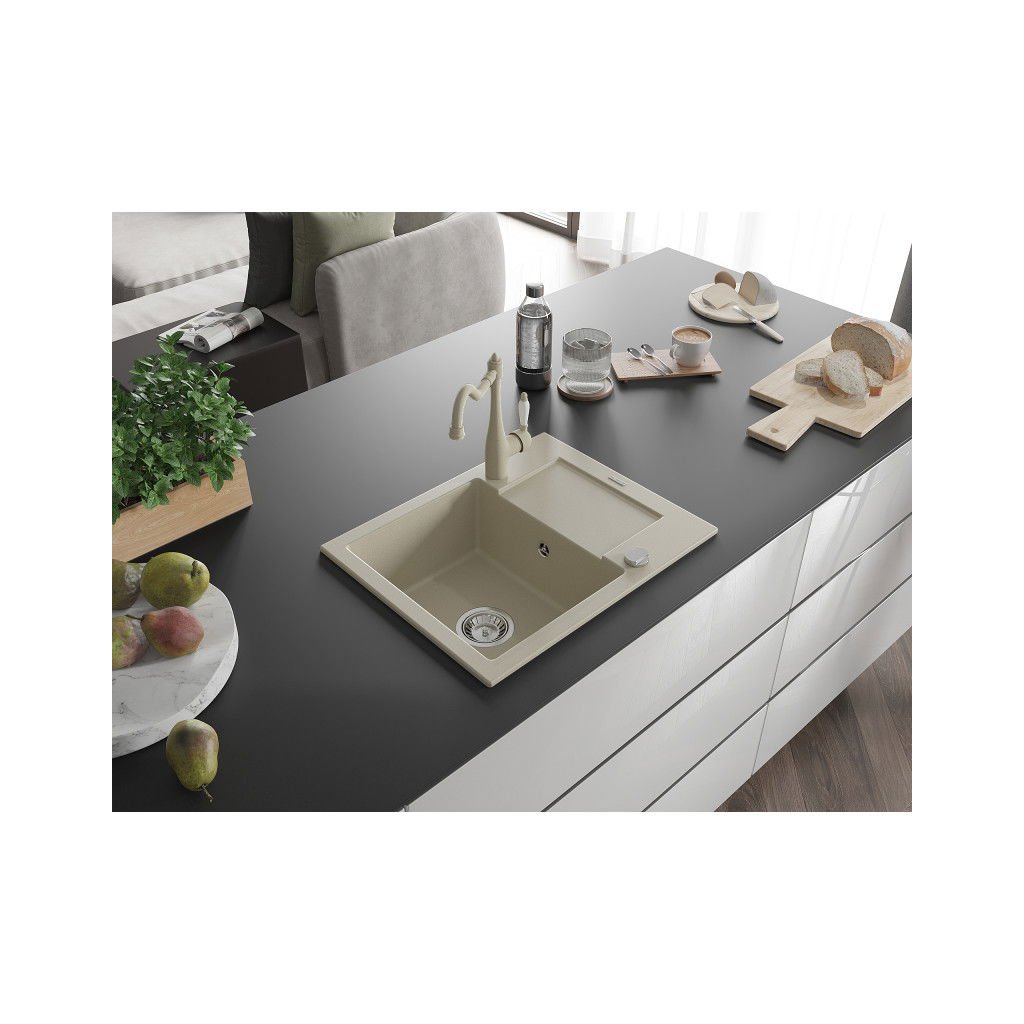 Mexen Enzo, chiuveta granit 576x465x174 mm, baterie 1 camera si chiuveta Carla, bej, 6506-69-670700-69
