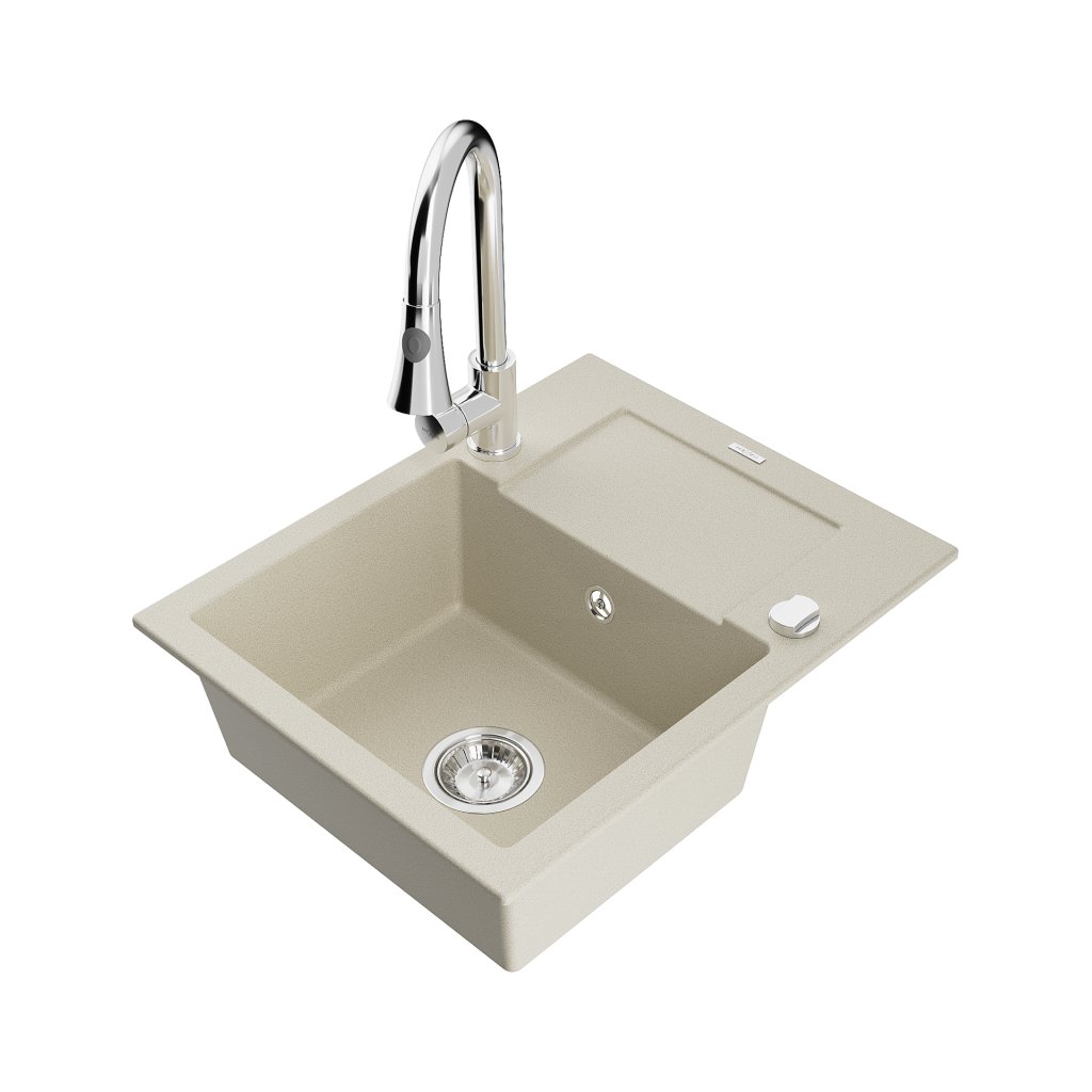 Mexen Enzo, chiuveta granit cu 1 camera 576x465x174 mm si baterie chiuveta Elia, bej, 6506-69-670101-00