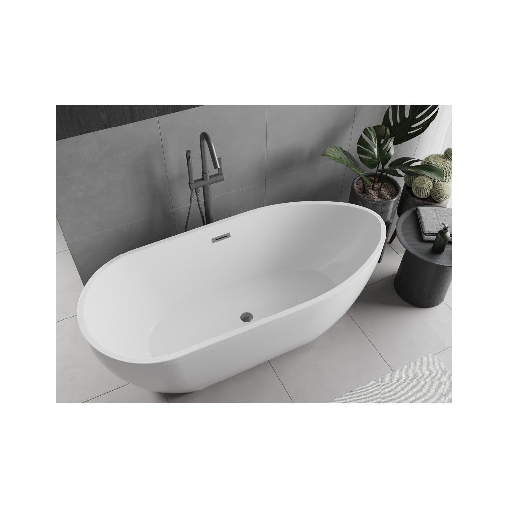 Mexen Eos, cadă de sine stătătoare 150 x 75 cm, alb, preaplin grafit, 52471507500-66