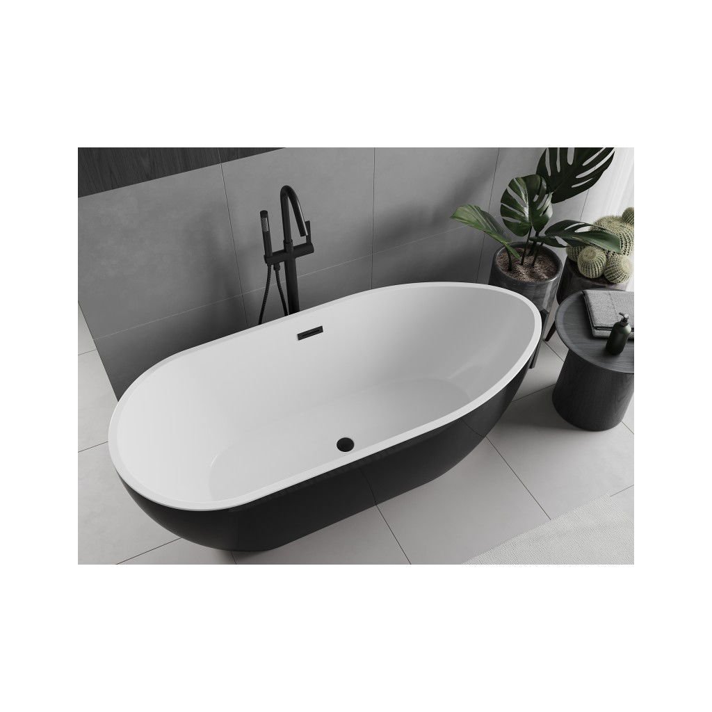Mexen Eos, cadă de sine stătătoare 150 x 75 cm, alb-negru, preaplin negru mat, 52471507575-70