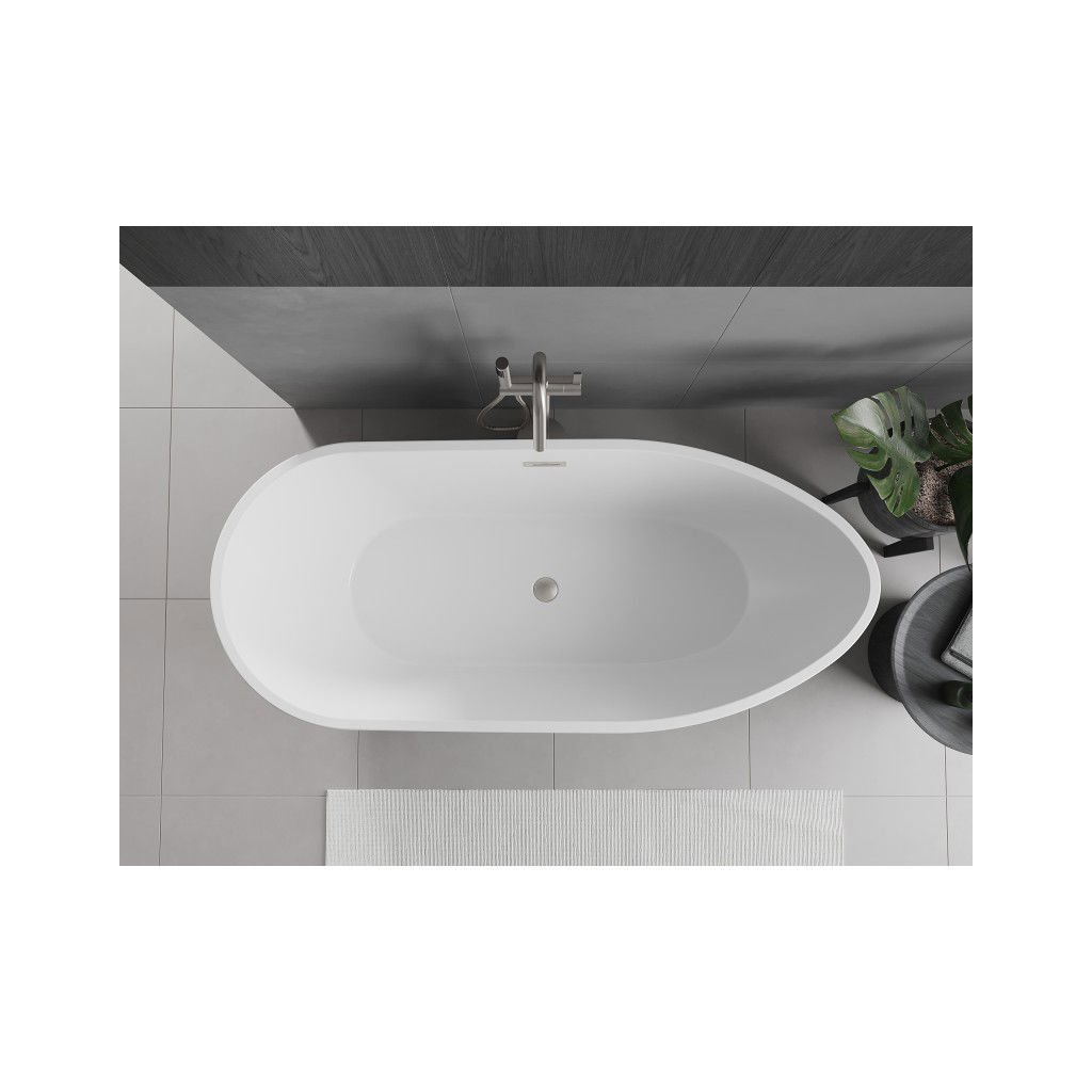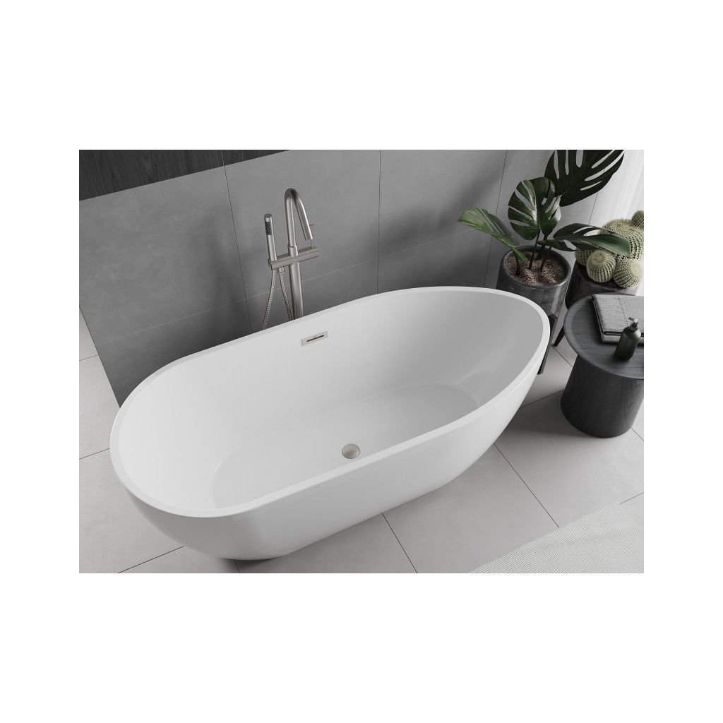 Mexen Eos, cadă de sine stătătoare 150 x 75 cm, albă, preaplin din oțel periat, 52471507500-97