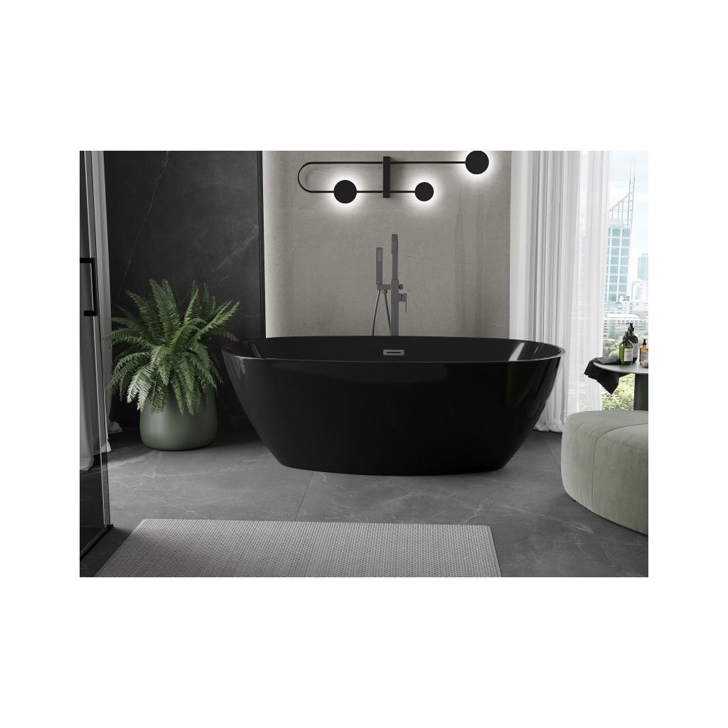 Mexen Eris, cadă de sine stătătoare 170 x 80 cm, neagră, preaplin grafit, 53441708070-66