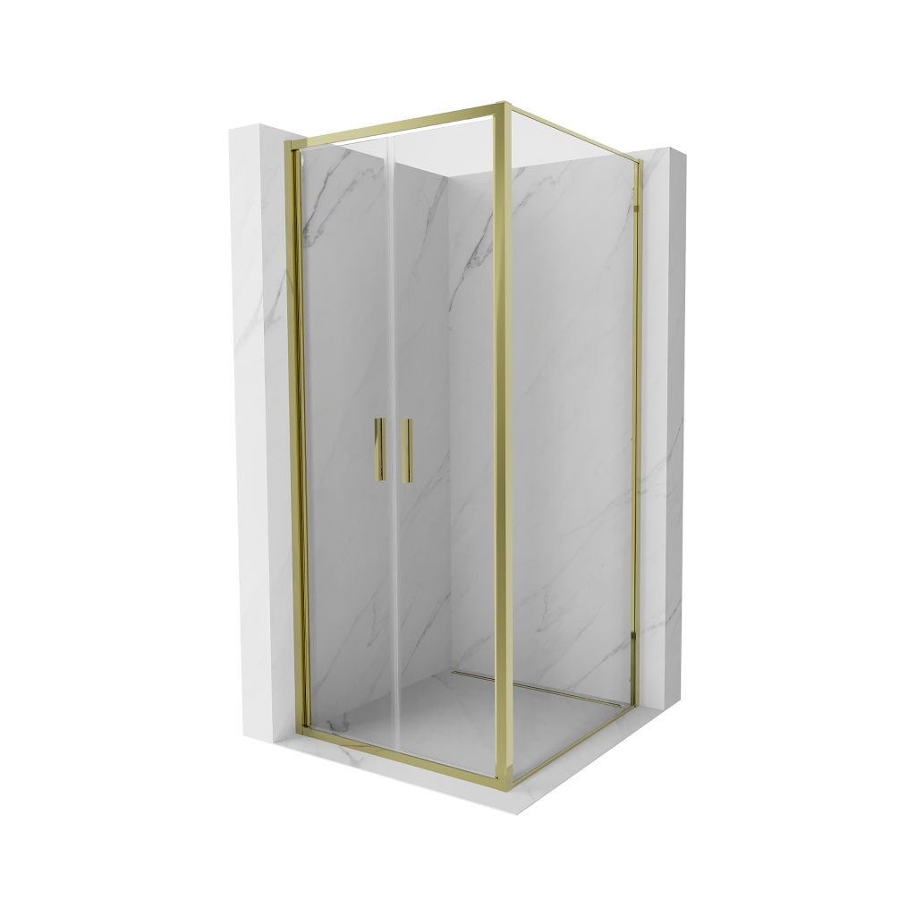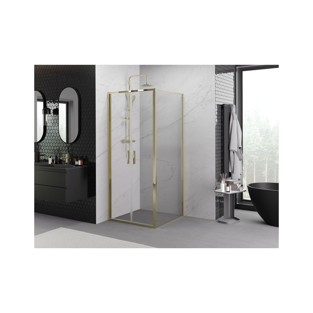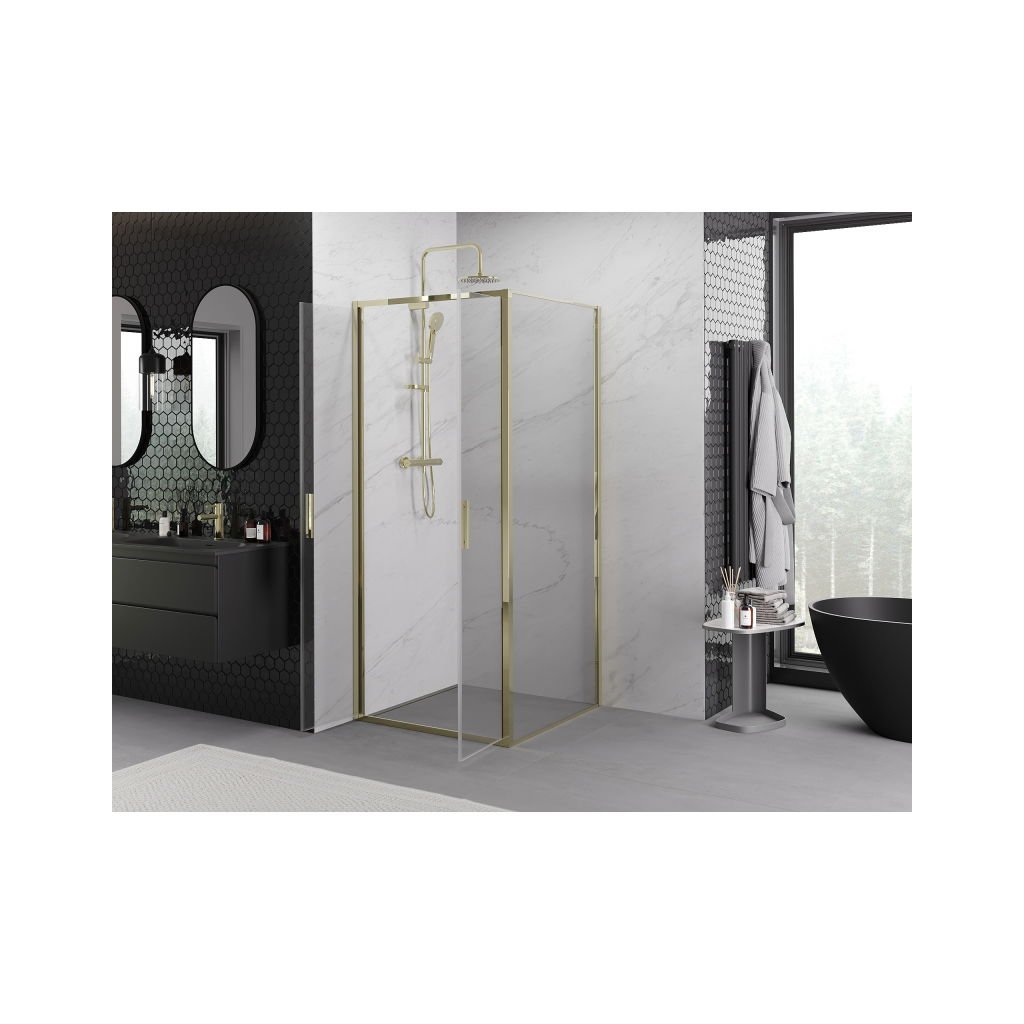 Mexen Exo, cabină de duș cu balamale 90 x 90 cm, sticlă transparentă, auriu, 814-090-090-50-00
