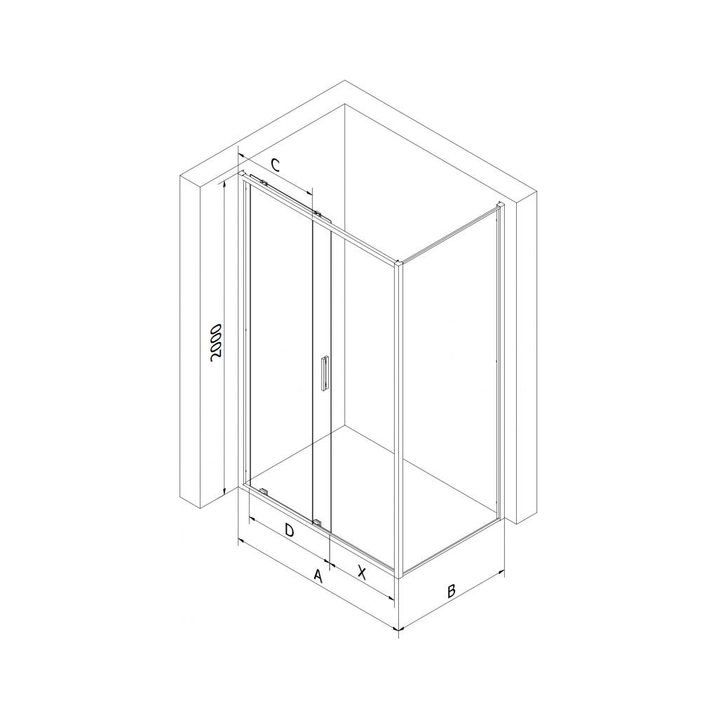 | Tip: | Rohový - 1-stranný, posuvné dvere |