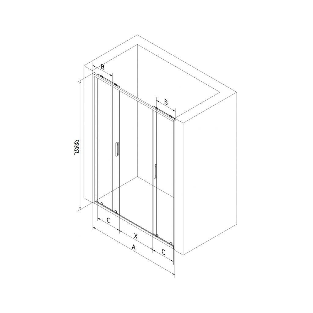 Mexen Exo, culisant cu 2 aripi 200x200 cm, sticla transparenta de 6 mm, profil cromat, 8152-200-000-01-00