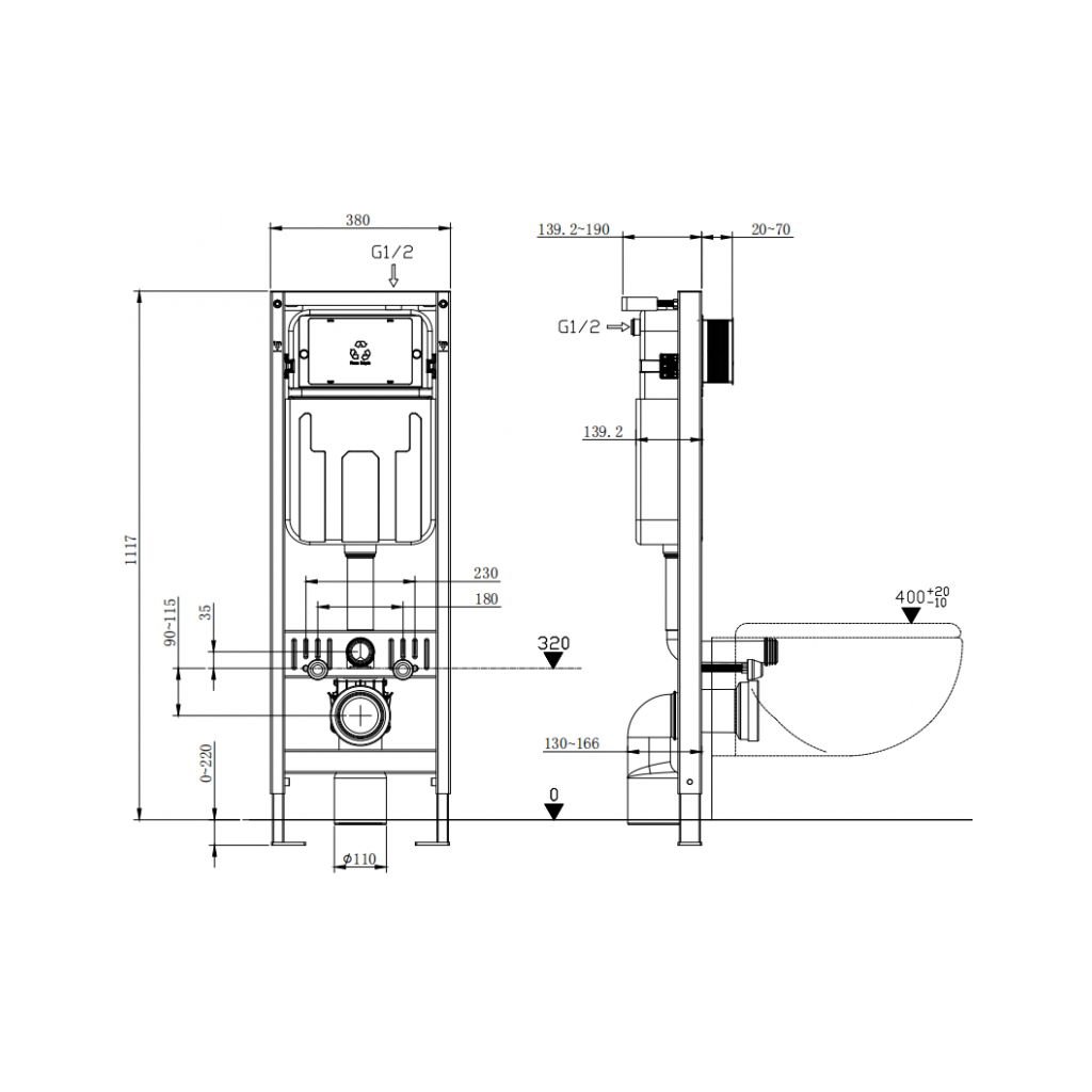 Mexen Fenix Air W, modul ascuns îngust cu spălare pneumatică pentru WC suspendat h112 l38 cm, 6A105