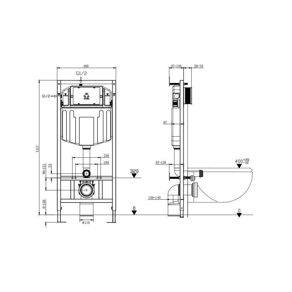 Mexen Fenix E, modul ascuns pentru WC suspendat h112 l48 cm, 60109