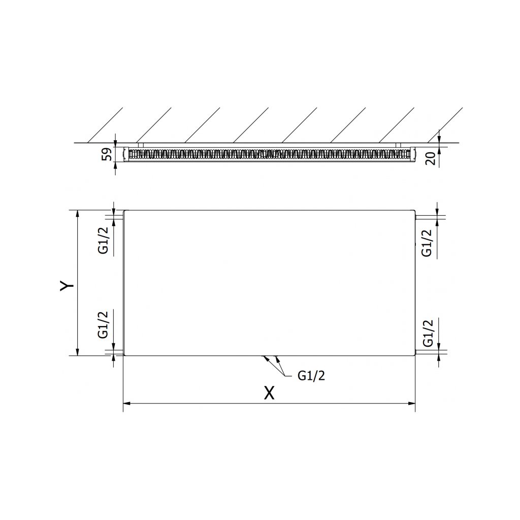 Mexen Flat CCF11, radiator panou 600 x 1300 mm, racord central jos, 1018 W, alb, W6C11F-060-130-00