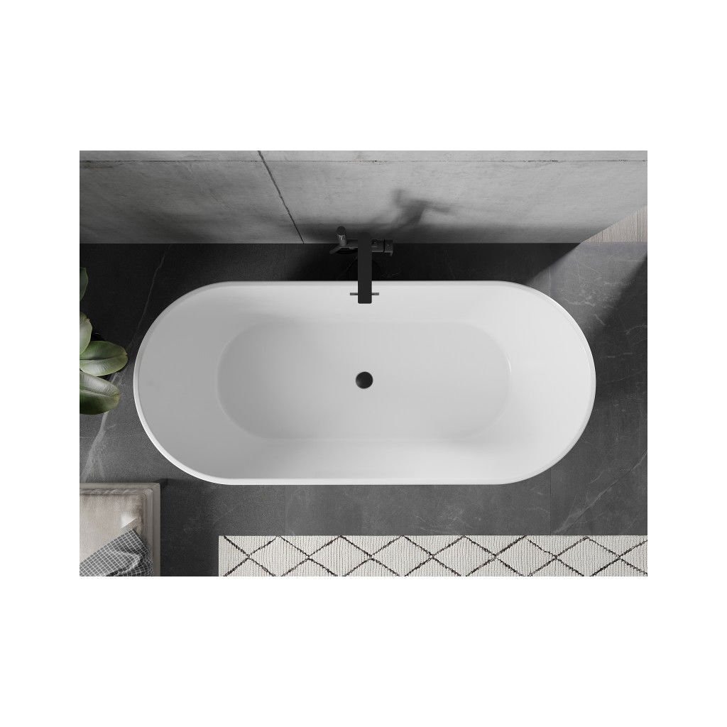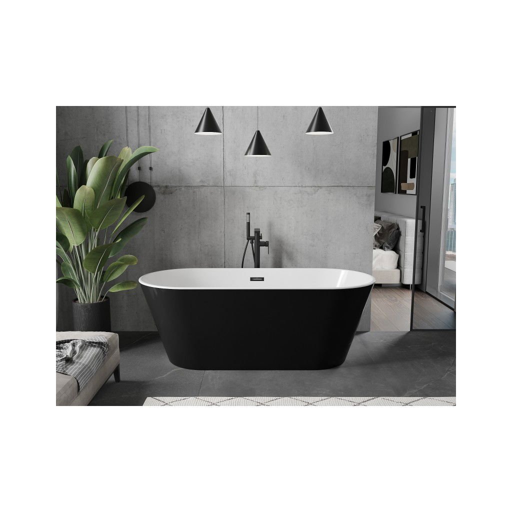 Mexen Flavia, cadă de sine stătătoare 150 x 75 cm, alb-negru, preaplin negru mat, 54031507575-70