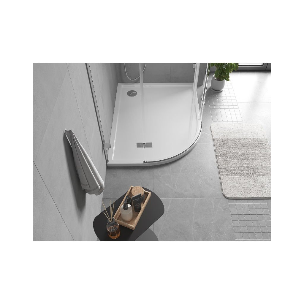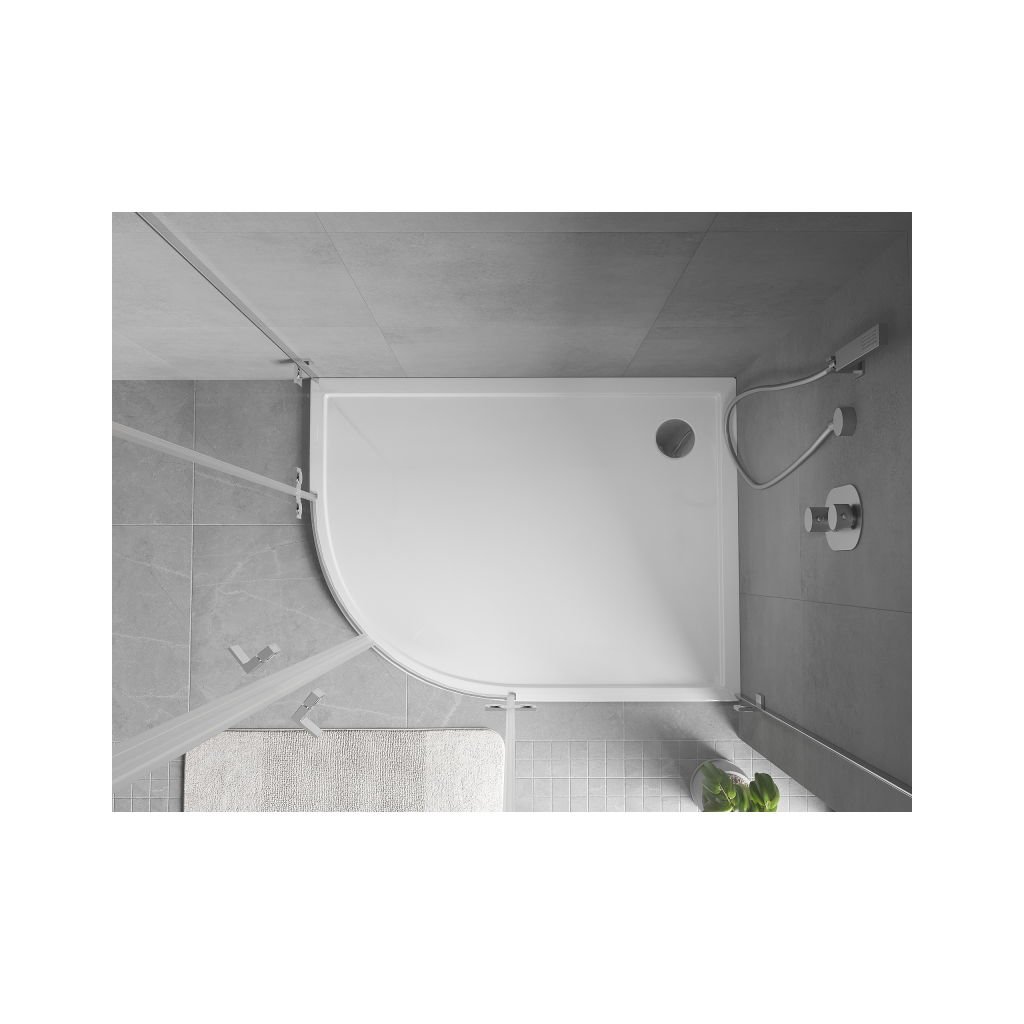 Mexen Flow, cădiță de duș asimetrică, tip sfert de cerc, subțire, dreapta 100 x 80 cm, alb lucios, 46Q108010R