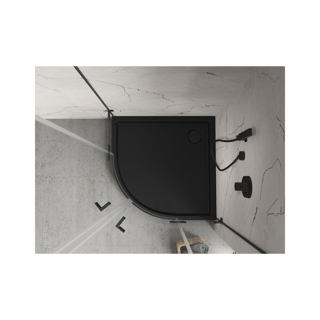 Mexen Flow+, cădiță de duș rotundă 90 x 90 cm, negru mat, 46Q709090H