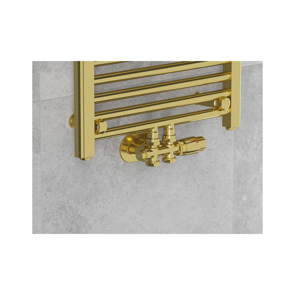 Mexen G00, kit termostatic duplex cu capac rotund, conexiune unghiulară/dreaptă DN50, auriu lucios, W908-900-905-50