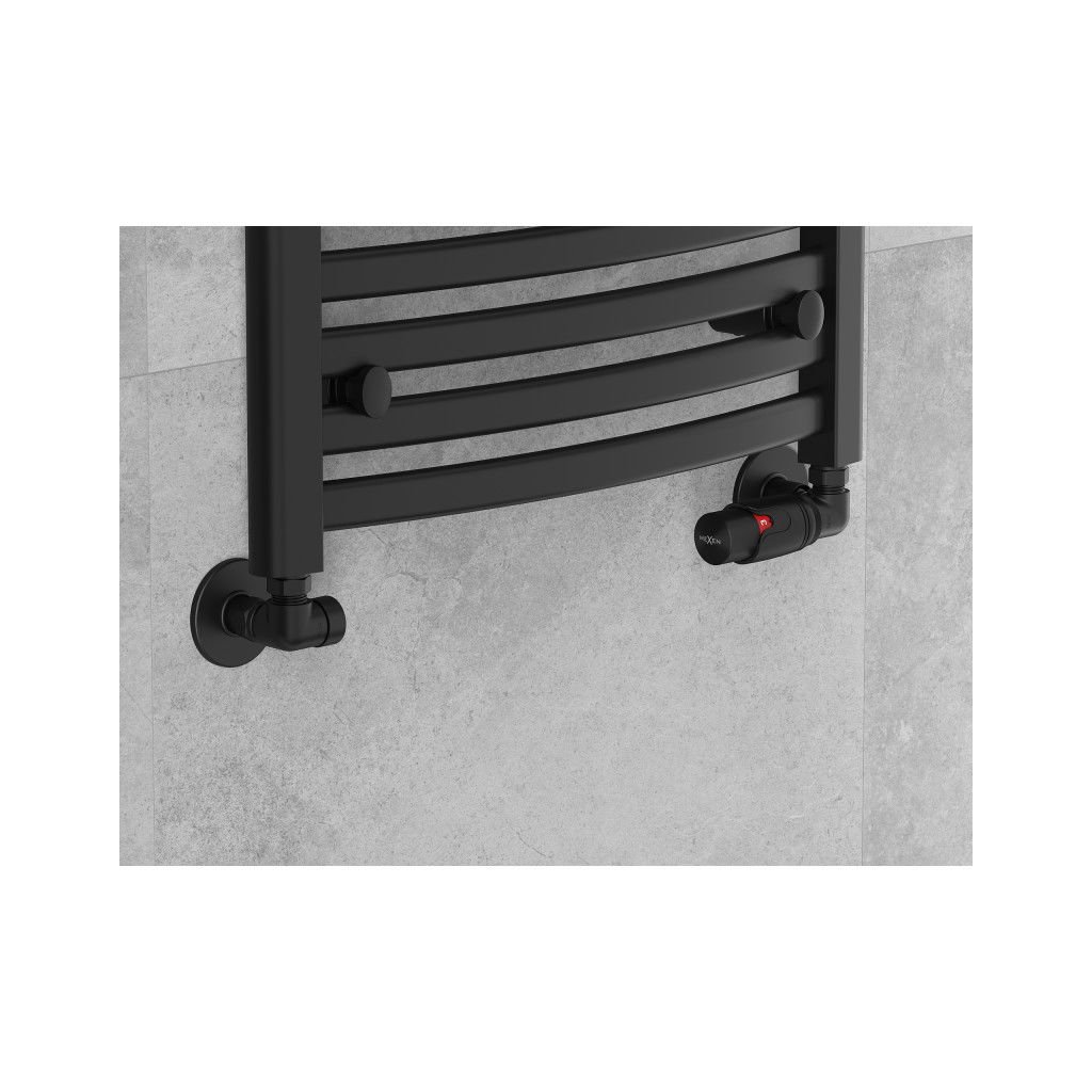 Mexen G00, supapă axială G1/2" cu capace rotunde și cap termostatic M30x1,5 mm, negru mat, W903-900-904-70