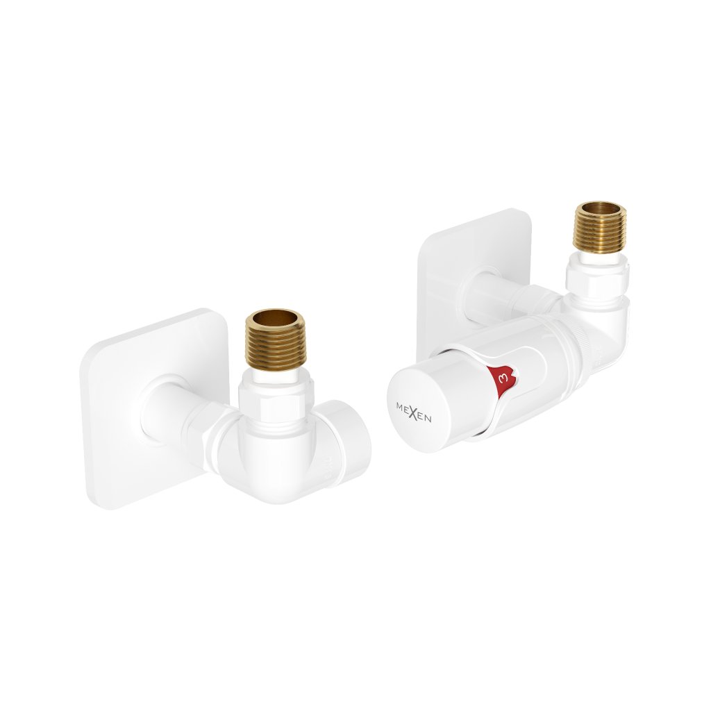 Mexen G00, supapă axială G1/2" cu capace unghiulare și cap termostatic M30x1,5 mm, alb, W903-900-909-20