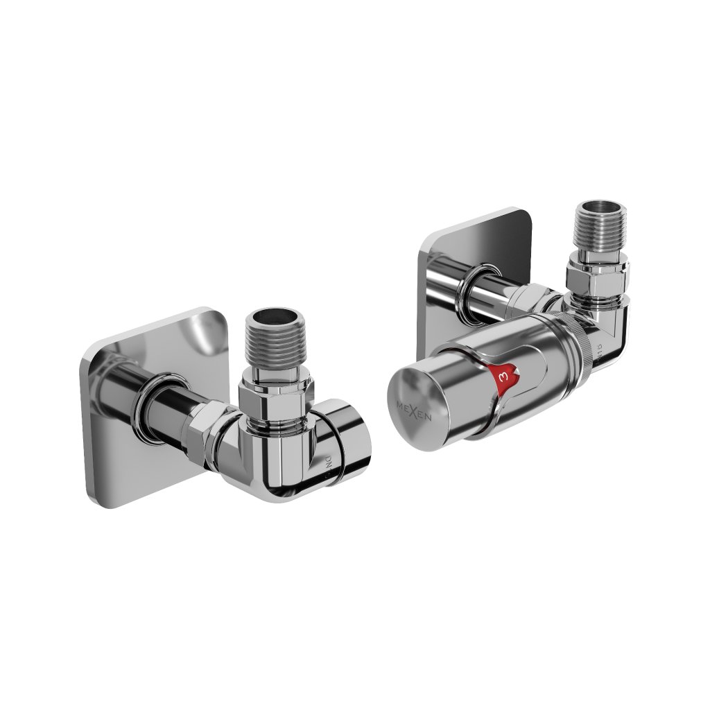 Mexen G00, supapă axială G1/2" cu capace unghiulare și cap termostatic M30x1,5 mm, crom, W903-900-909-01