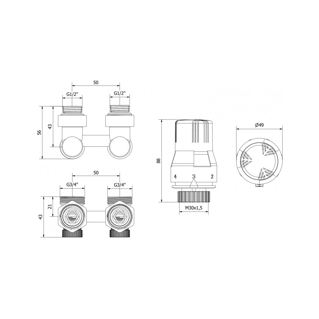 Mexen G02, set termostatic unghiular 1/2"x3/4" DN50 cu cap termostatic M30x1,5 mm, otel, W911-012-928-01