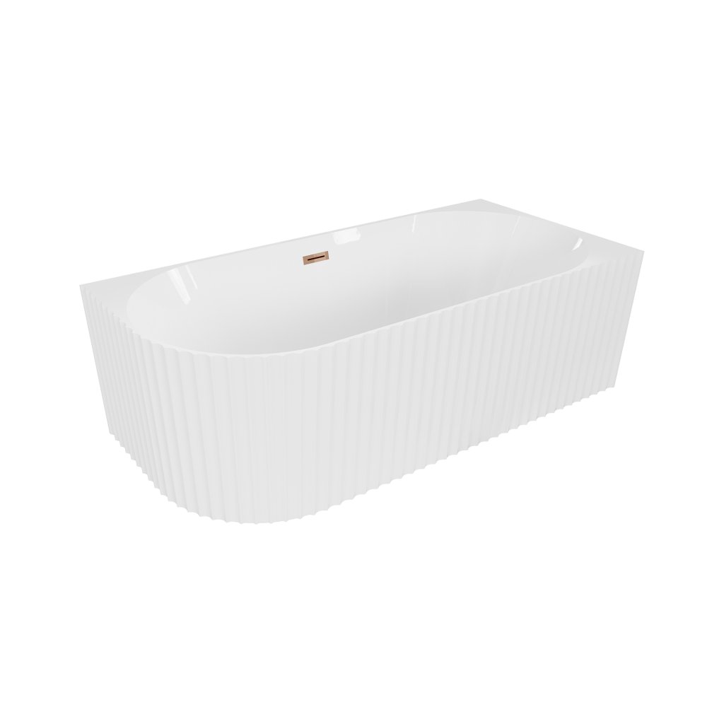 Mexen Gia, cada de colț de sine stătătoare, canelată, dreapta, 150 x 75 cm, alb lucios, aur roz, 52701507500P-60