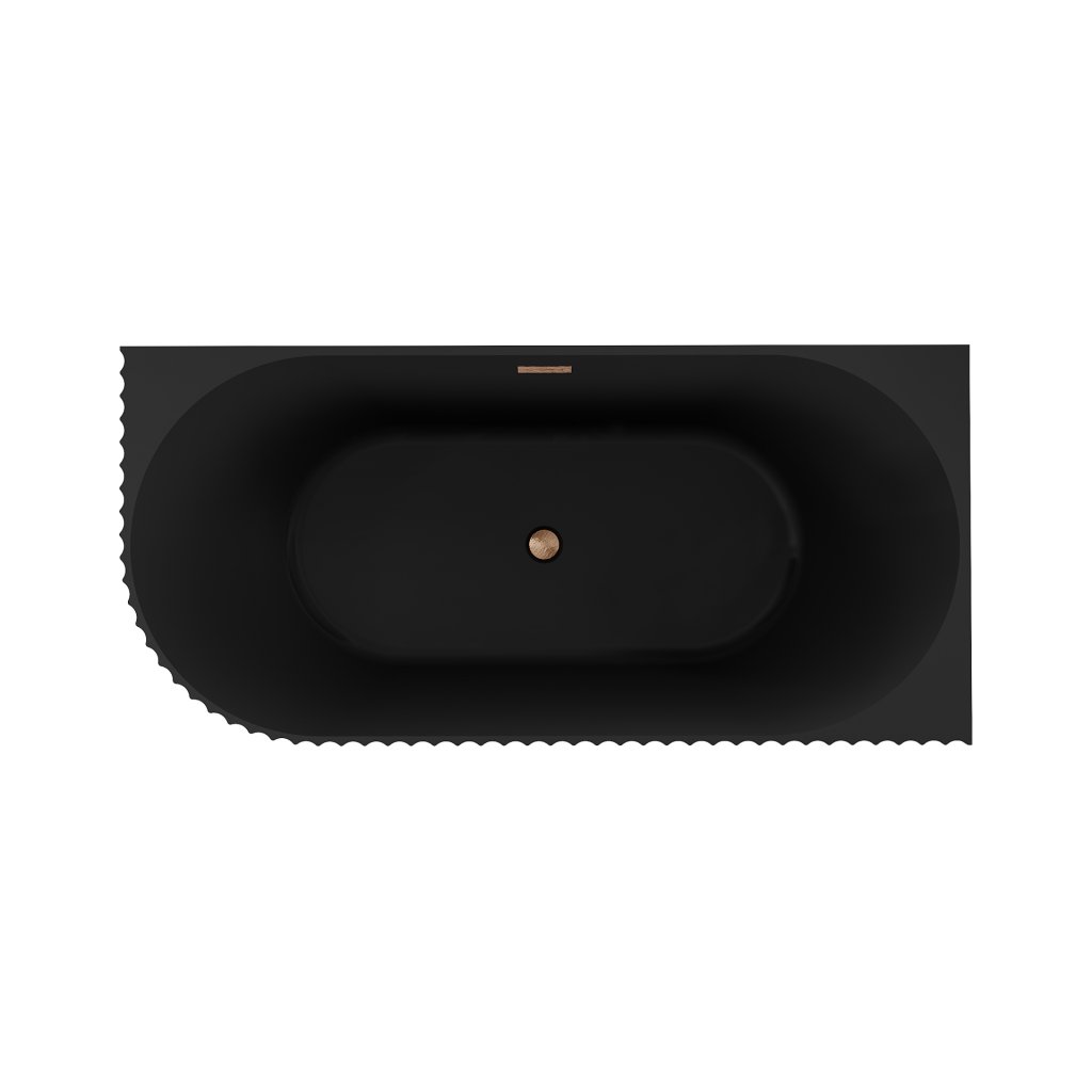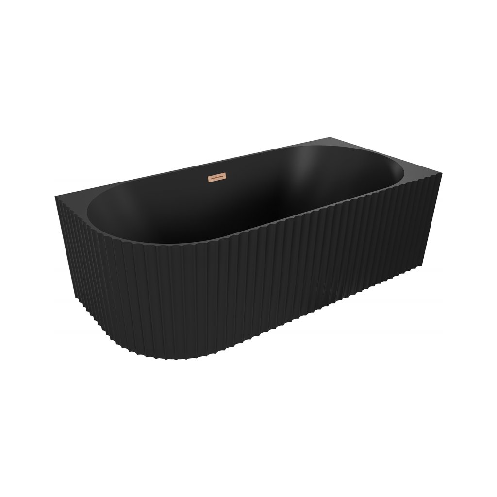 Mexen Gia, cada de colț de sine stătătoare, canelată, dreapta, 150 x 75 cm, negru mat, cupru mat, 52701507571P-65