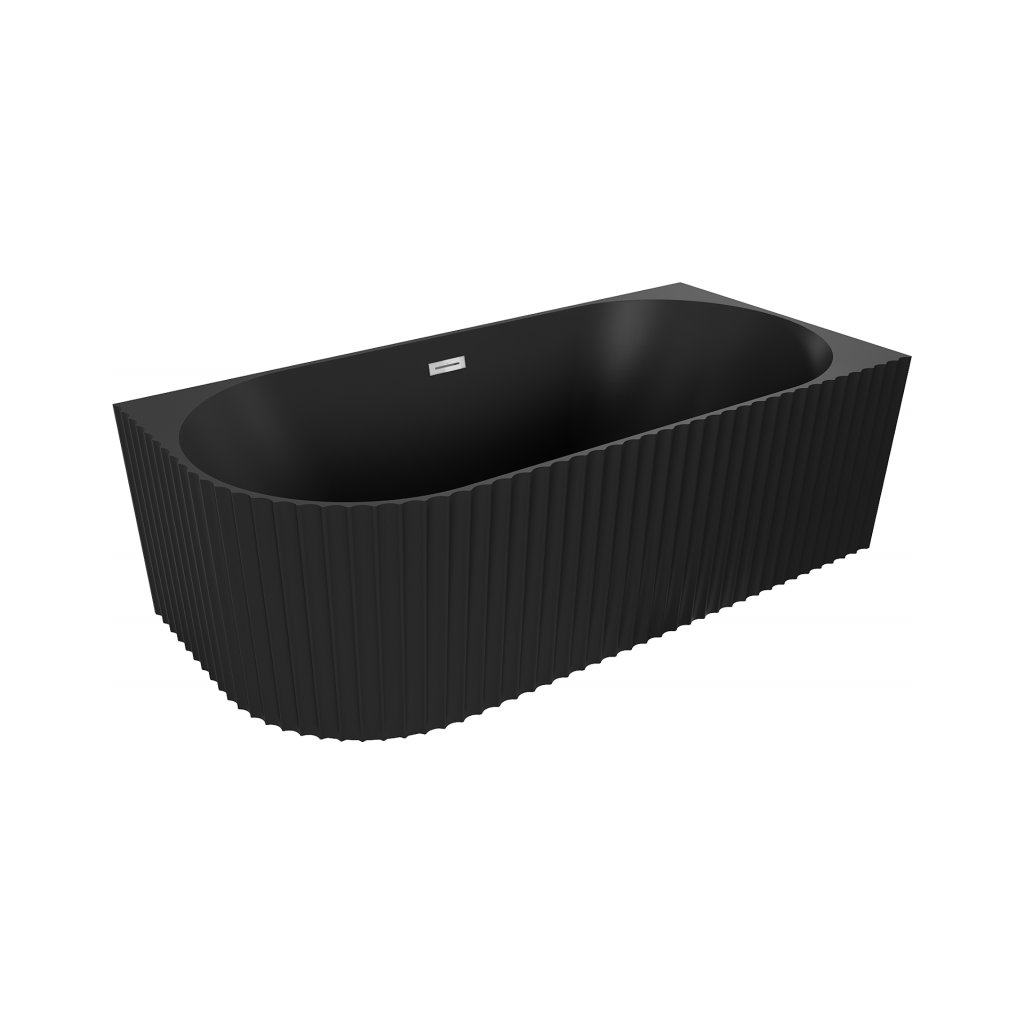 Mexen Gia, cadă de colț de sine stătătoare, canelată, dreapta, 150 x 75 cm, negru mat, preaplin cromat, 52701507571P-01