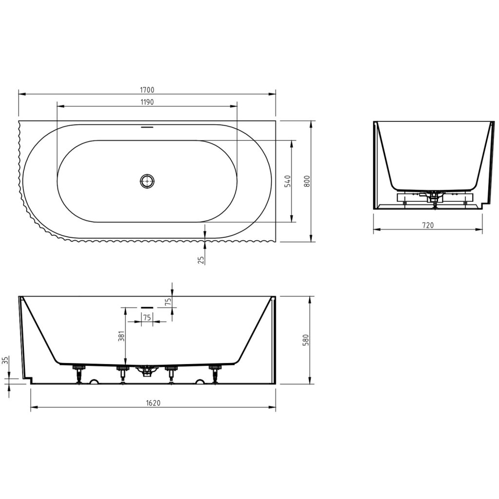 Mexen Gia, cada de colț de sine stătătoare, canelată, dreapta, 170 x 80 cm, negru mat, 52701708071P-SS