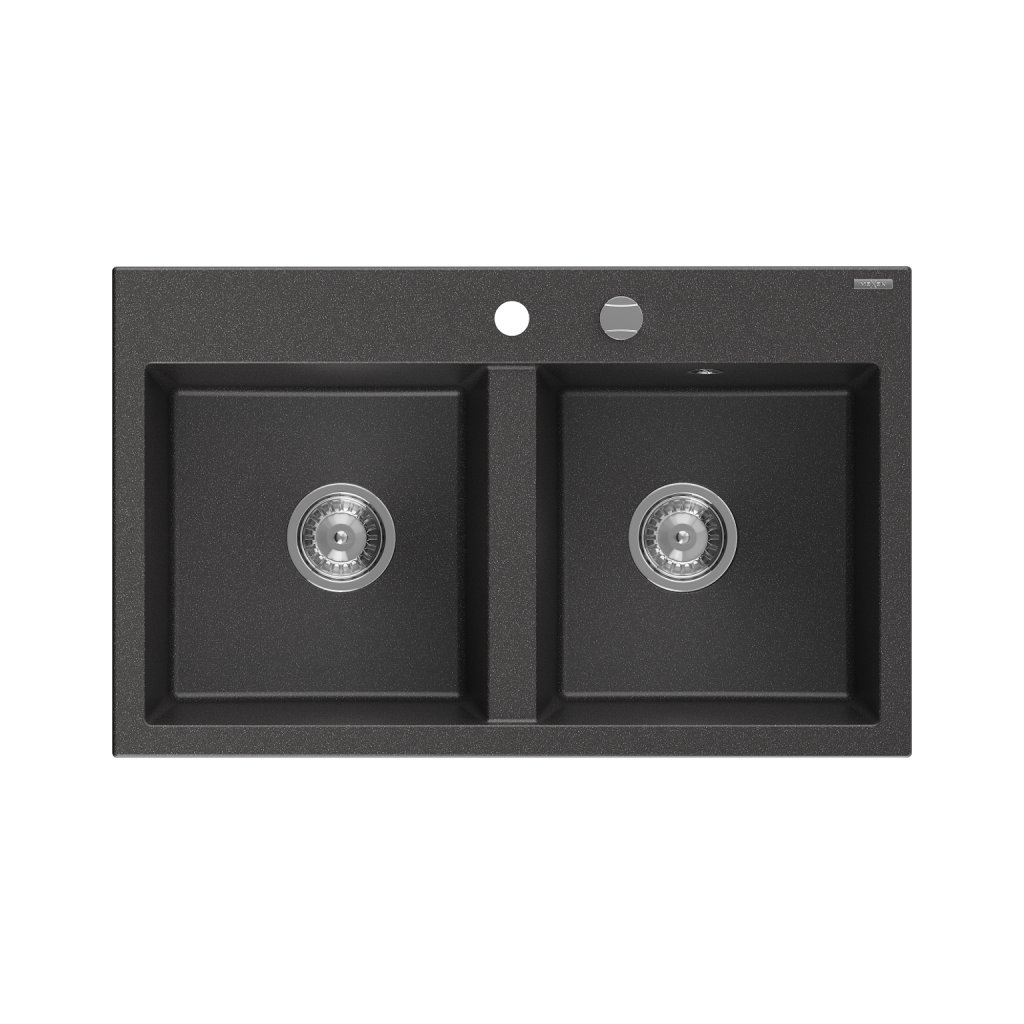 Mexen Hektor, chiuveta granit cu 2 camere 800x480x205 mm, pete negre, sifon cromat, 6521802000-76