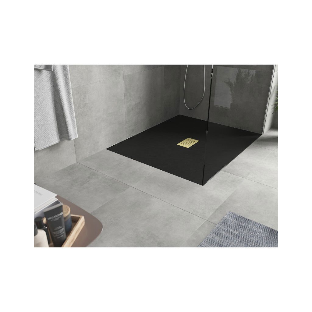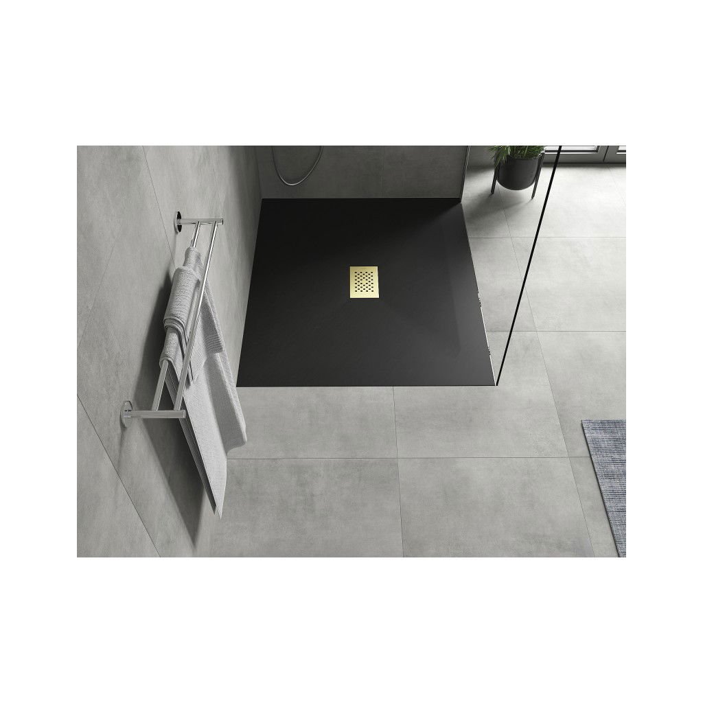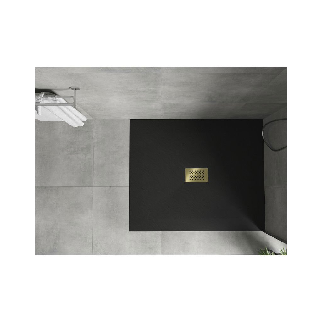 Mexen Hugo, cadă de duș dreptunghiulară SMC 110 x 100 cm, negru, capac auriu, 42701011-G