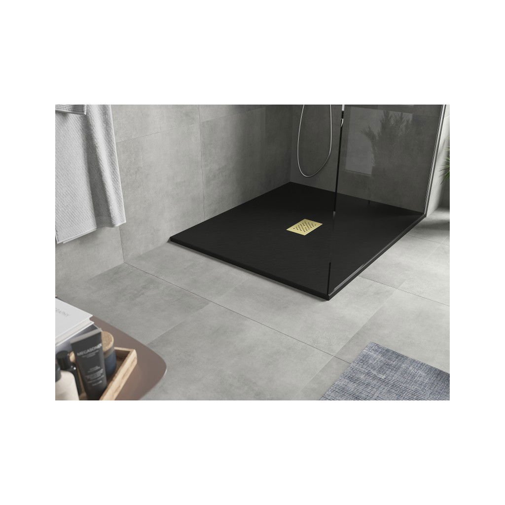 Mexen Hugo, cadă de duș dreptunghiulară SMC 120 x 100 cm, negru, capac auriu, 42701012-G