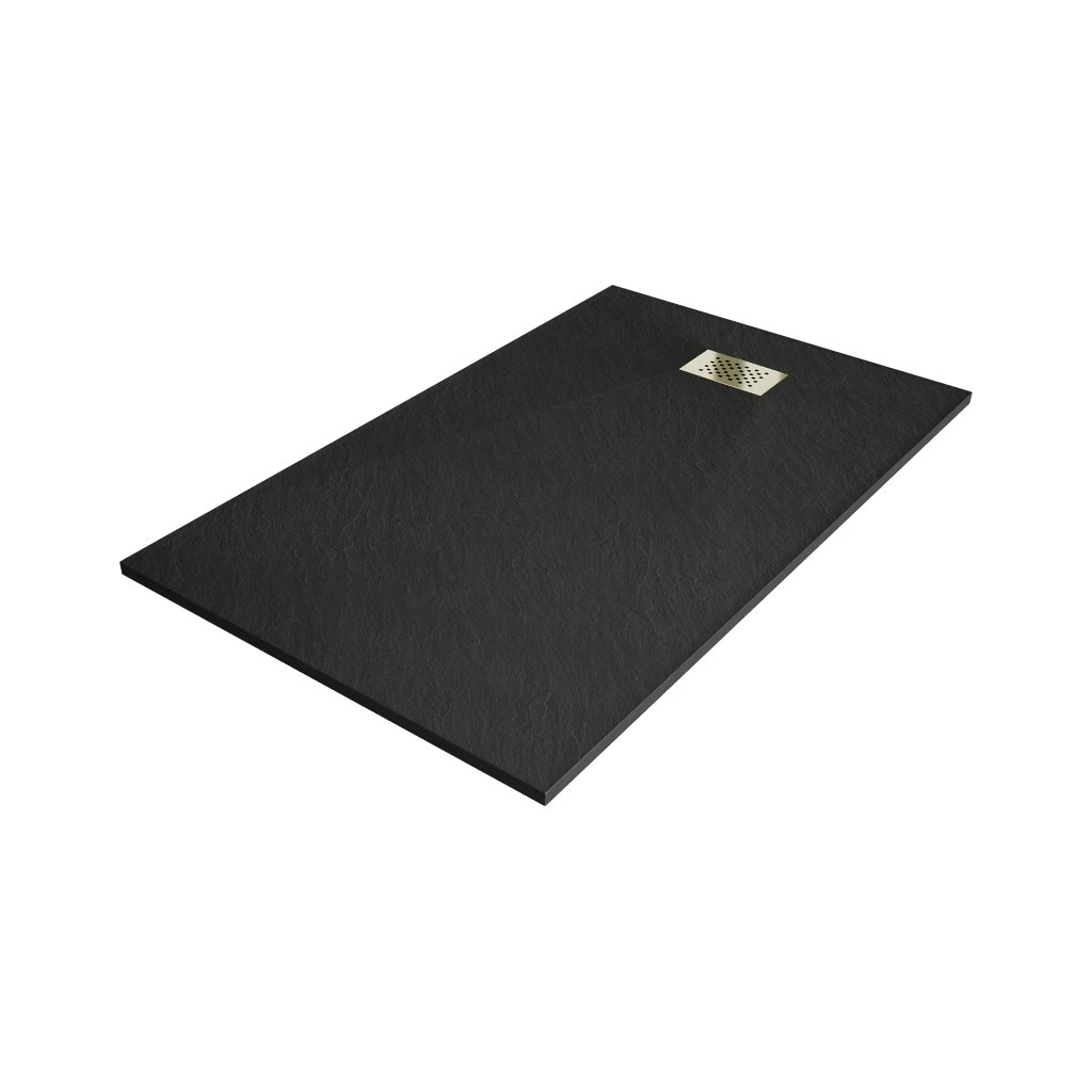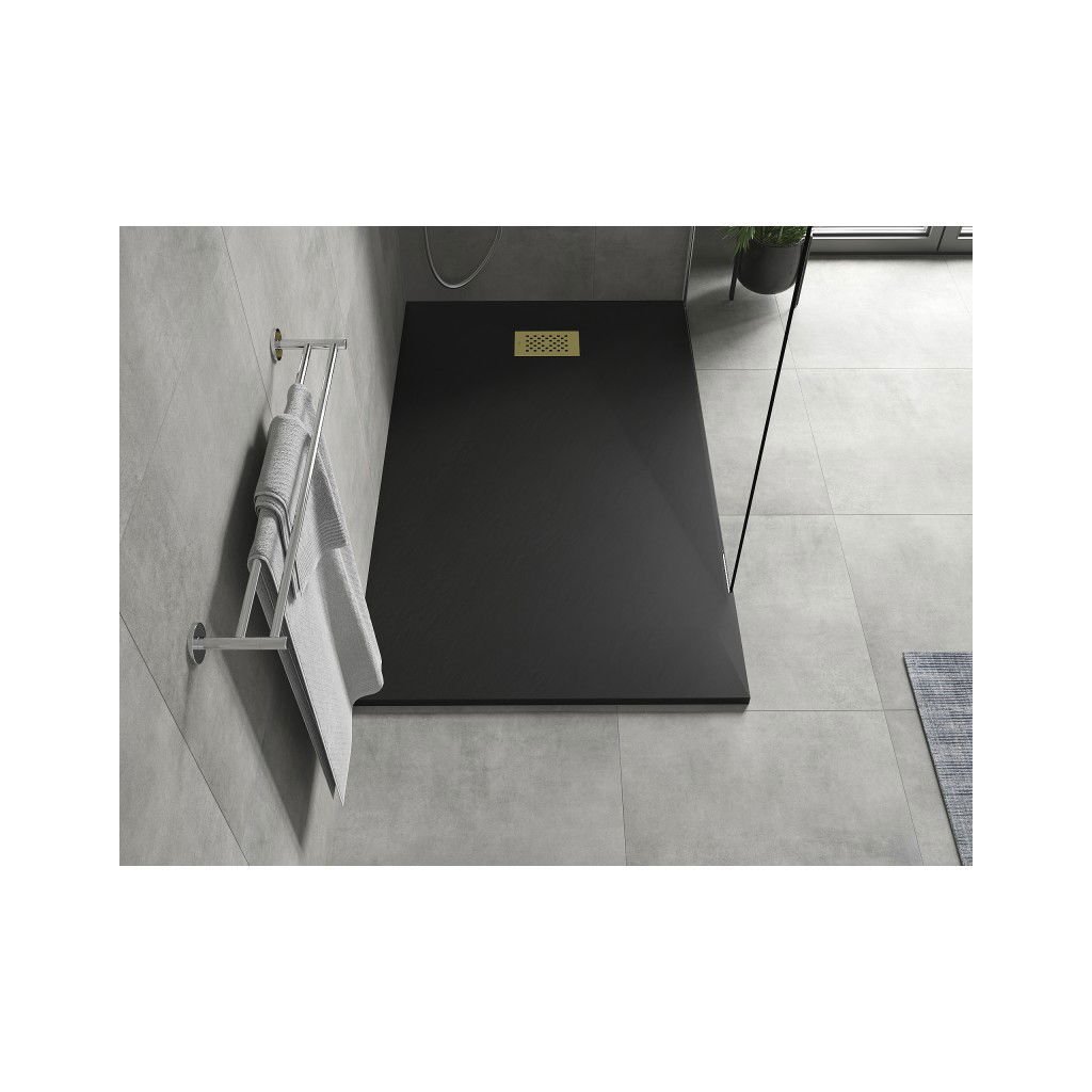 Mexen Hugo, cadă de duș dreptunghiulară SMC 150 x 70 cm, negru, capac auriu, 42707015-G