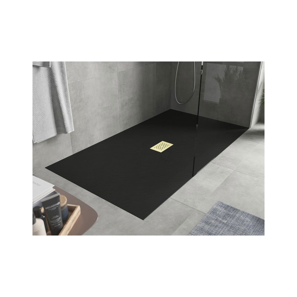 Mexen Hugo, cadă de duș dreptunghiulară SMC 160 x 100 cm, negru, capac auriu, 42701016-G