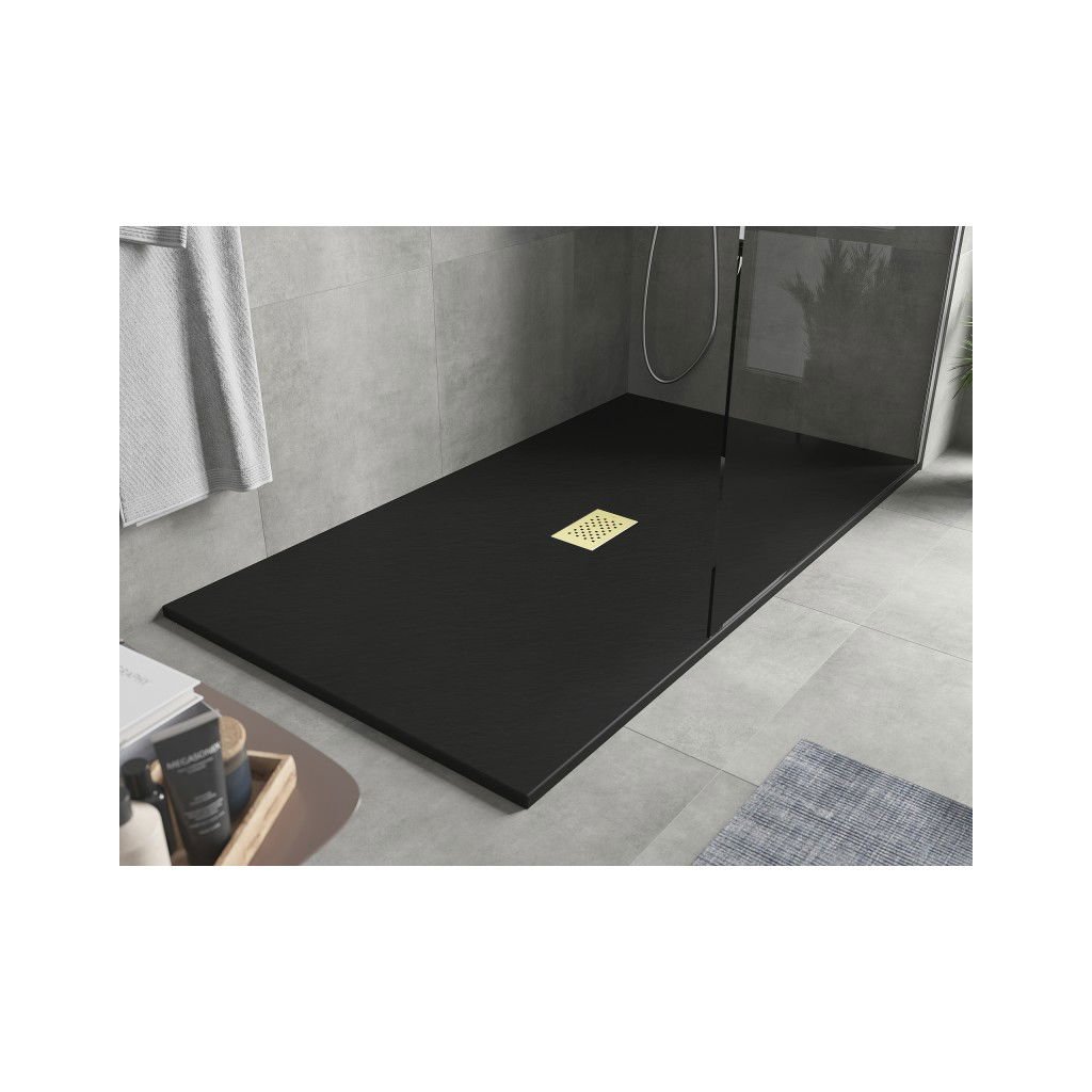 Mexen Hugo, cadă de duș dreptunghiulară SMC 180 x 100 cm, negru, capac auriu, 42701018-G
