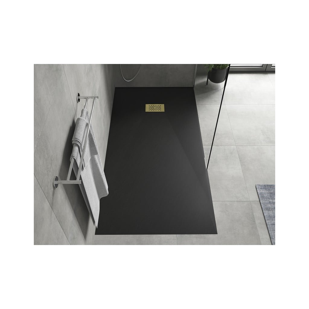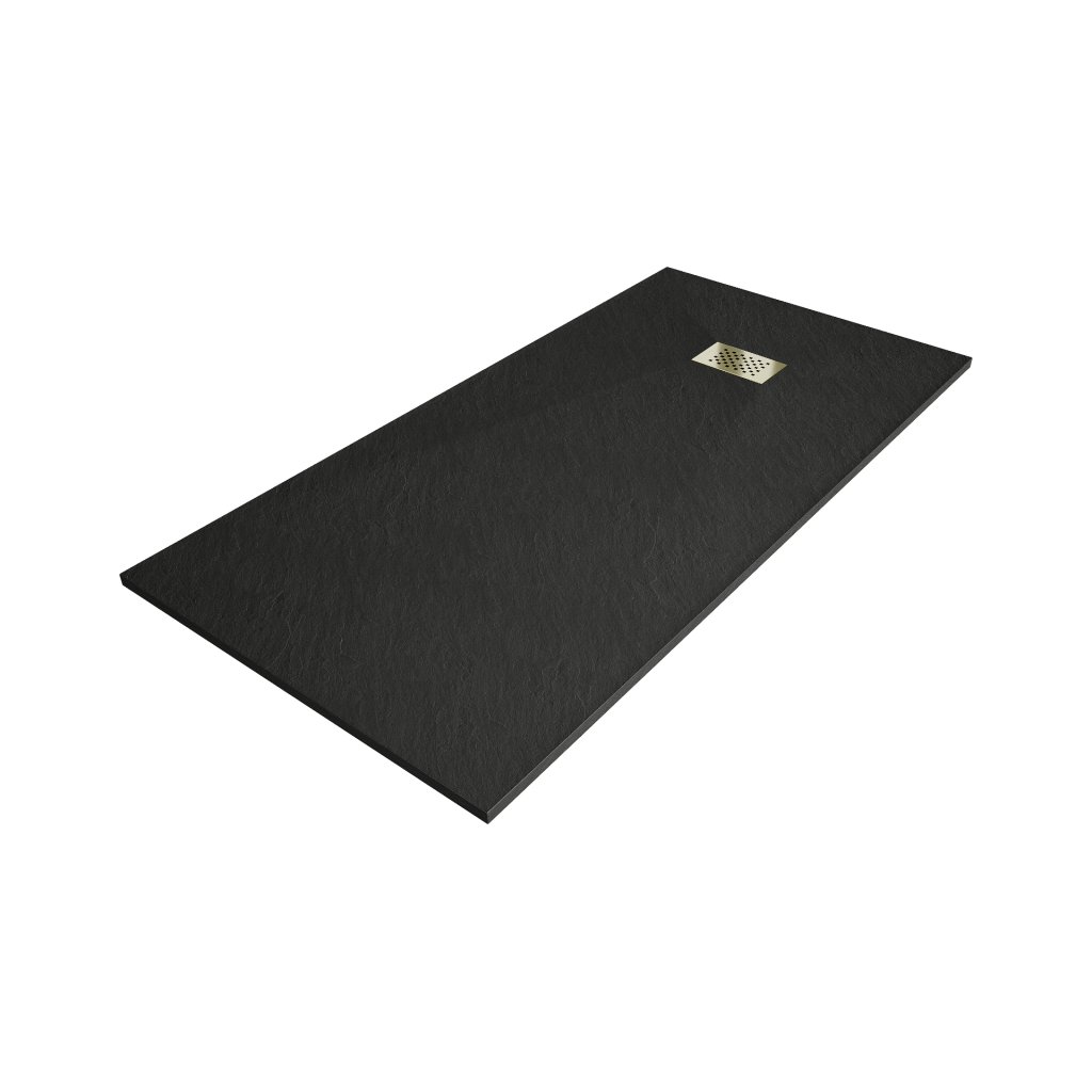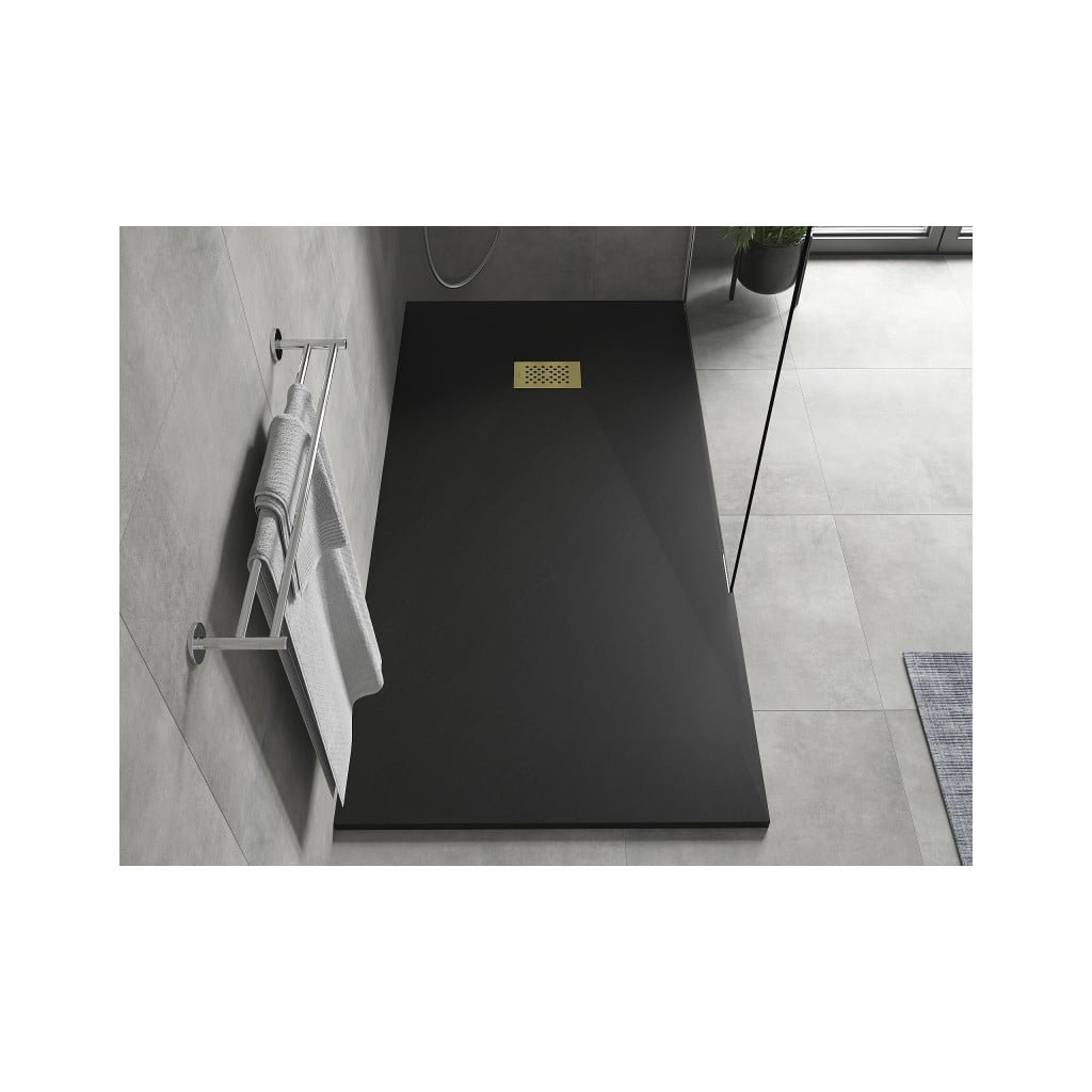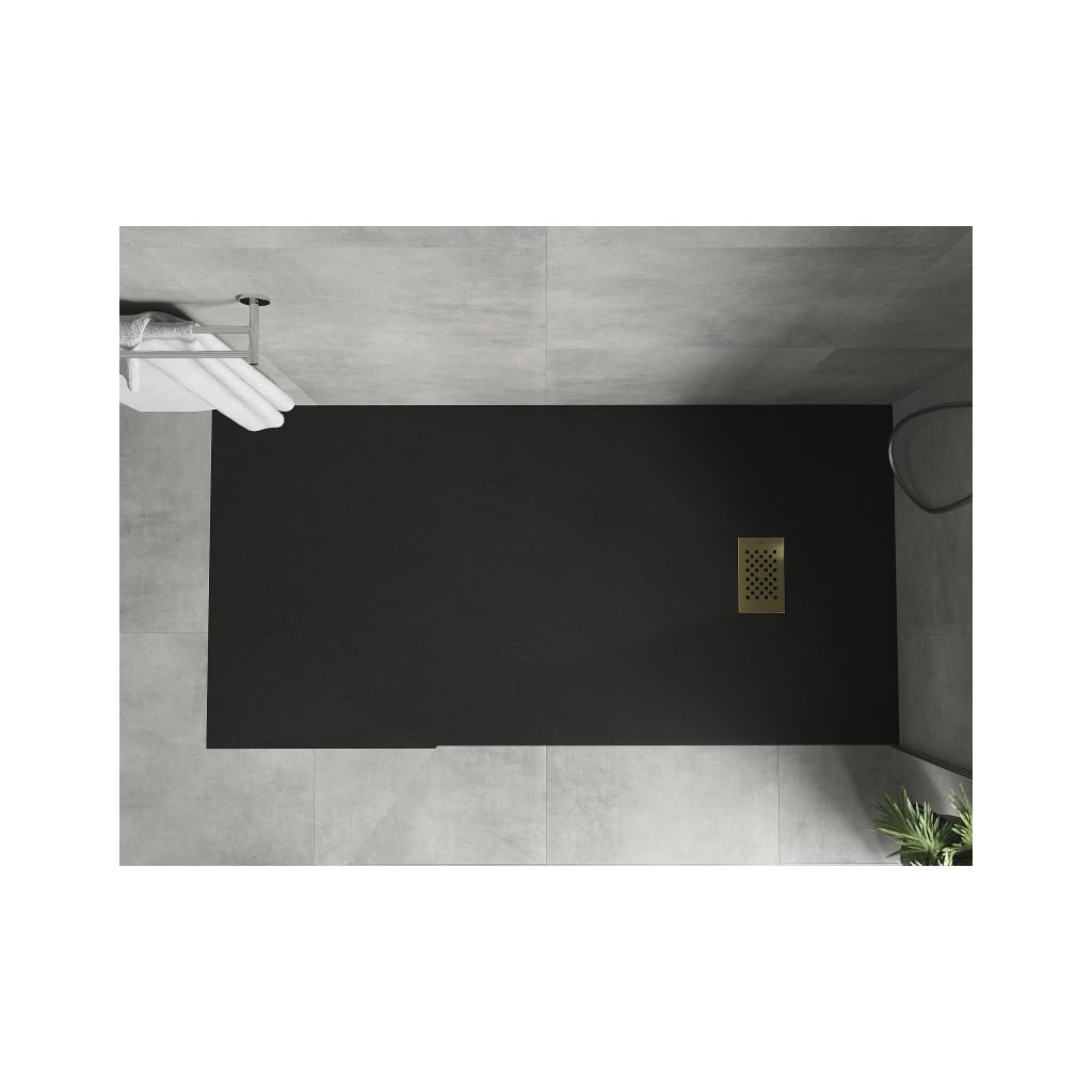 Mexen Hugo, cadă de duș dreptunghiulară SMC 180 x 90 cm, negru, capac auriu, 42709018-G