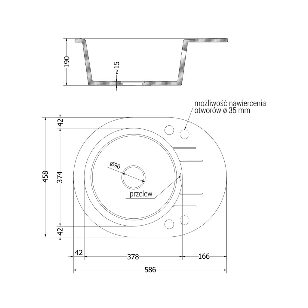- Orificiu de scurgere: 3,5”; fi = 90 mm