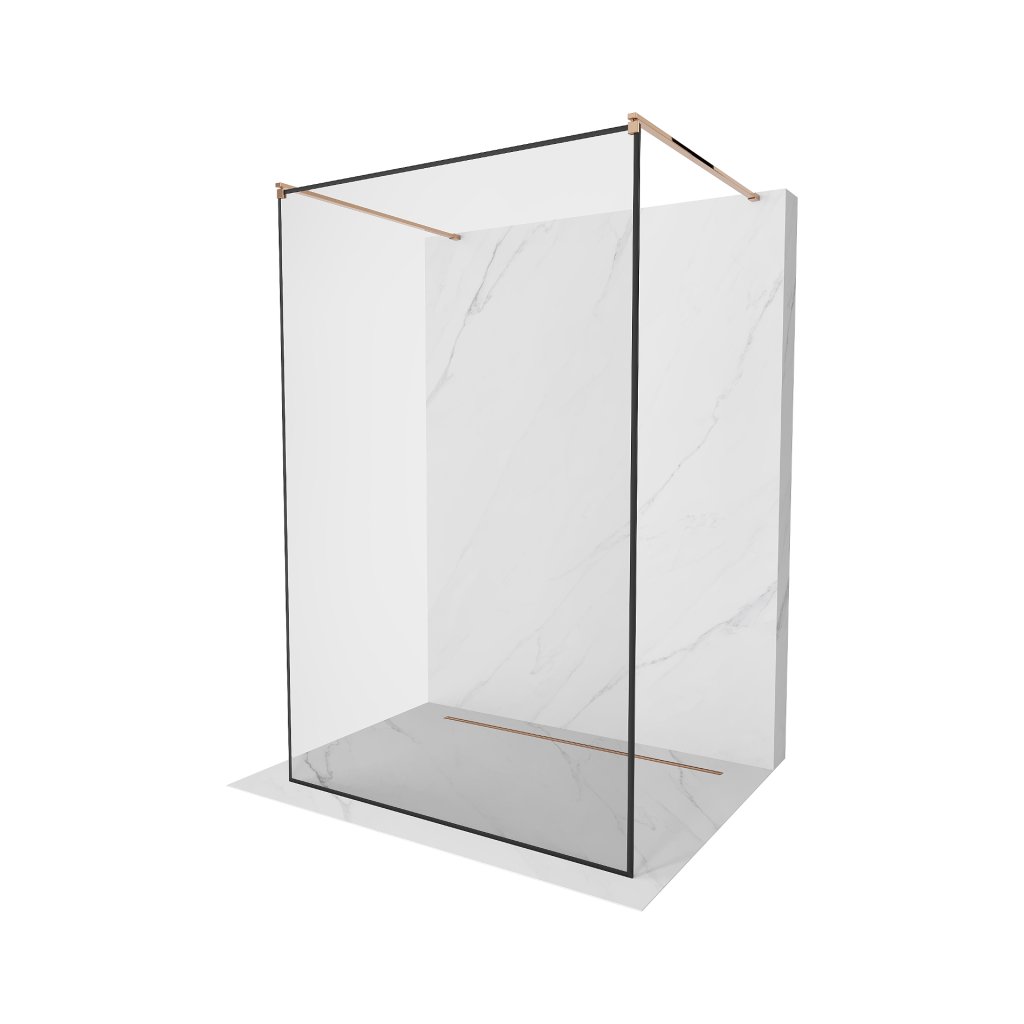 Mexen Kioto, cabină de duș 150 x 200 cm, model sticlă transparentă-negru de 8 mm, profil auriu roz, 800-150-002-60-70
