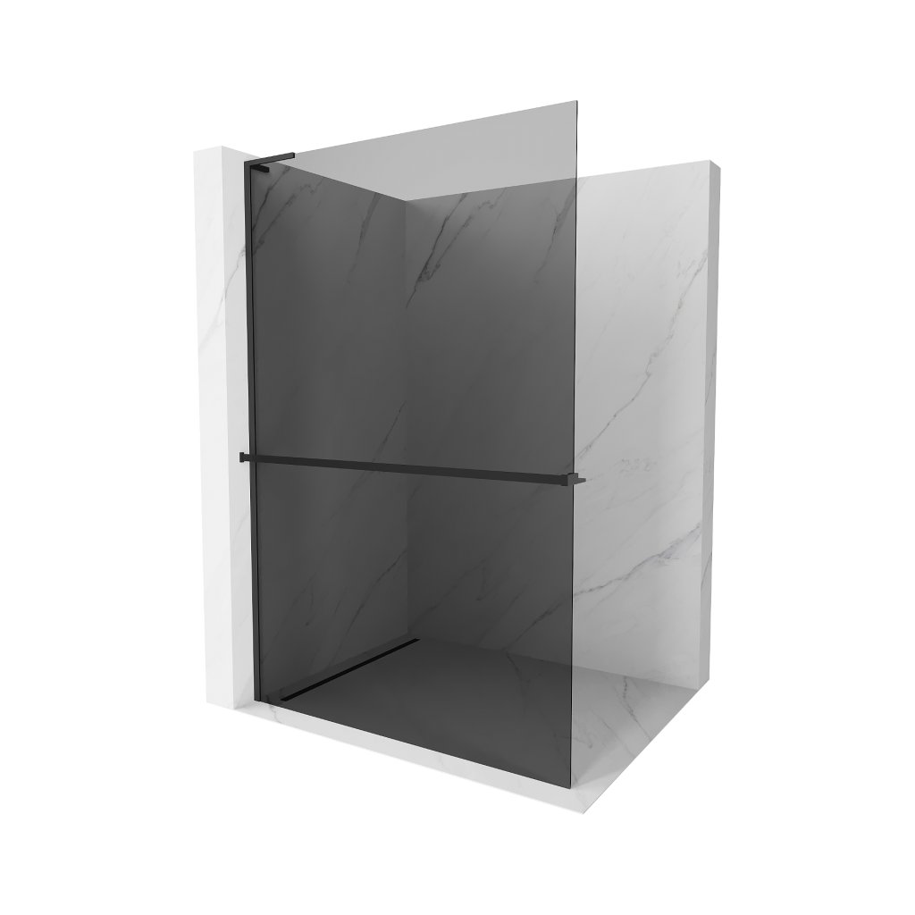 Mexen Kioto+ L, paravan de dus walk-in cu polita si cuier 70 x 200 cm, sticla gri 8mm, profil negru, 800-070-123-70-40