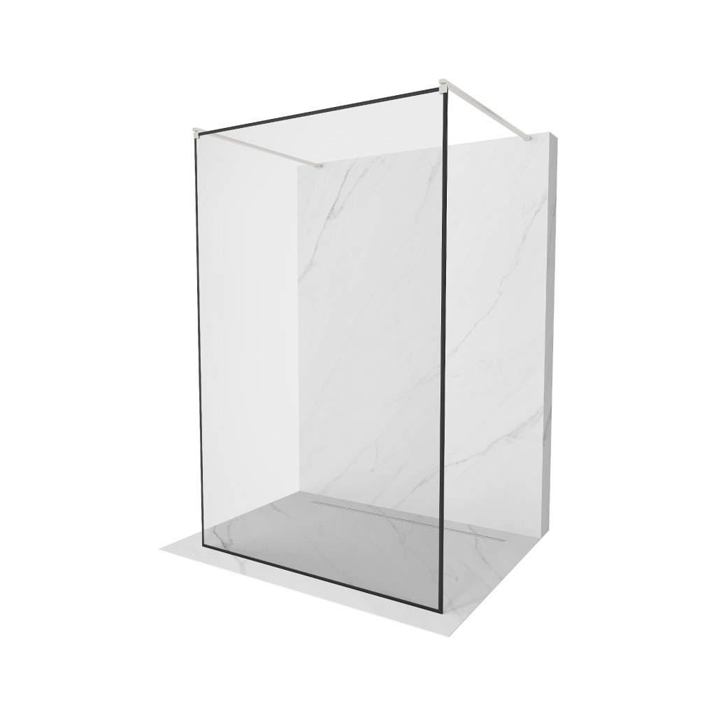 Mexen Kioto, Masa de dus Walk-In 100 x 200 cm, model sticla neagra 8 mm, profil din otel periat, 800-100-002-97-70