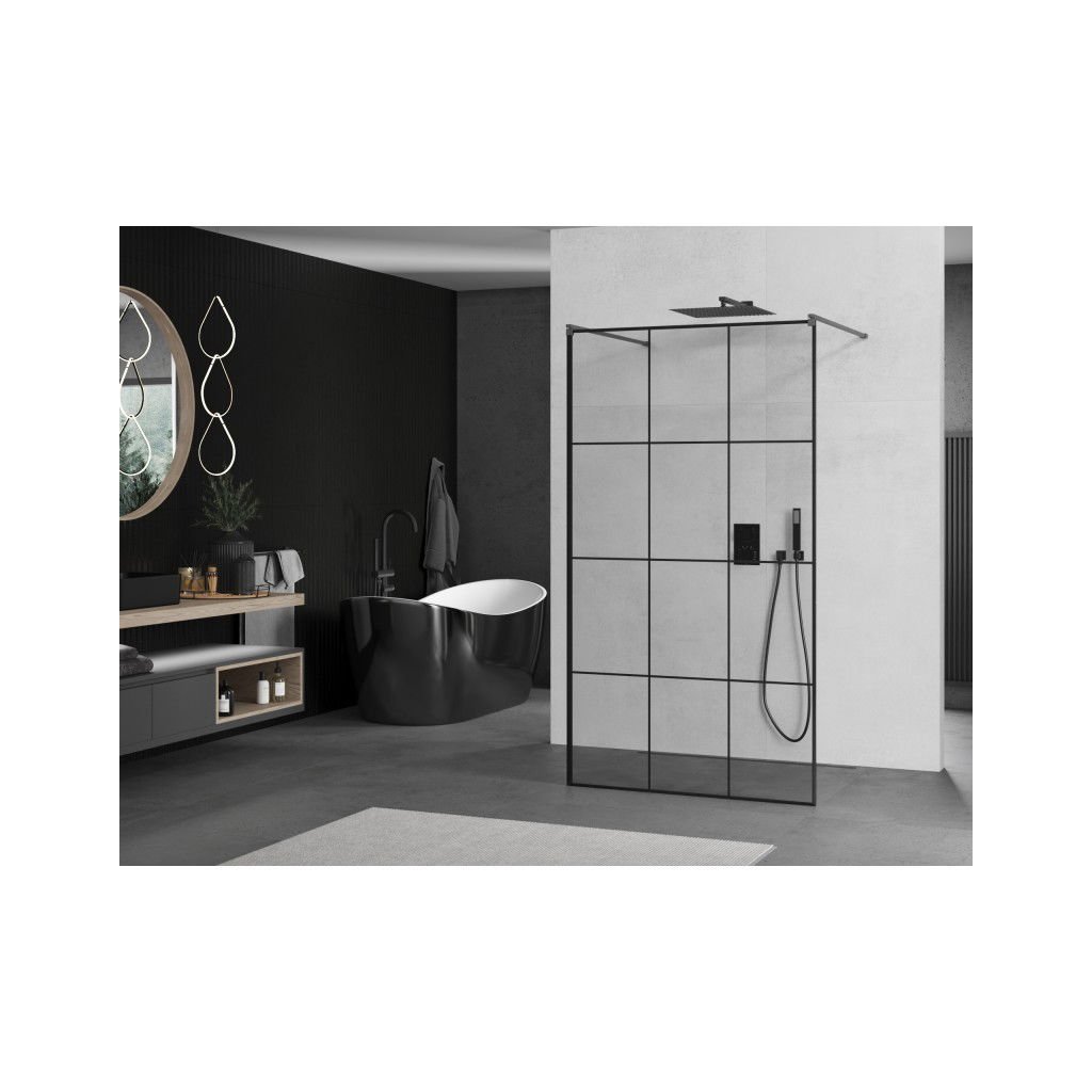 Mexen Kioto, Masa de dus Walk-In 100 x 200 cm, model sticla neagra 8 mm, profil grafit, 800-100-002-66-77