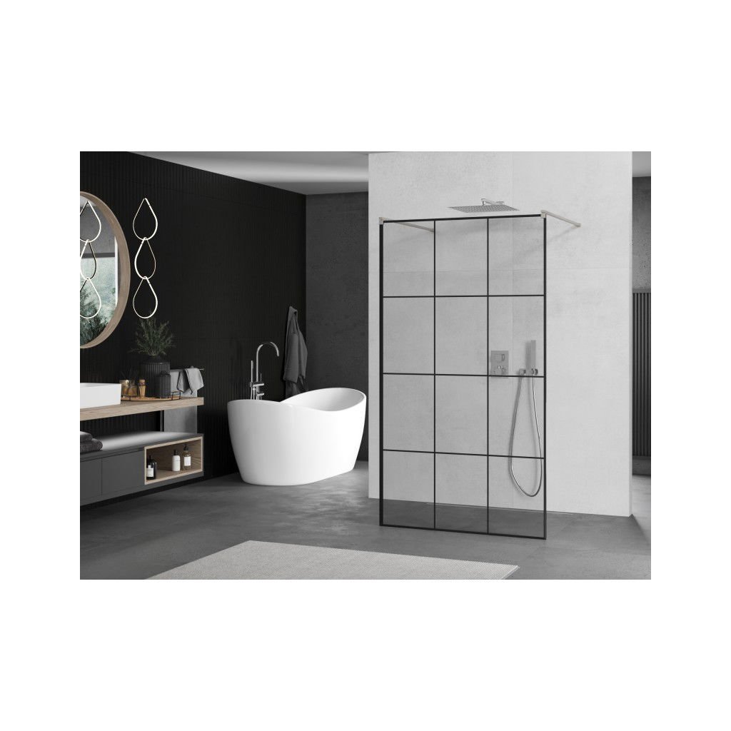 Mexen Kioto, Masa de dus Walk-In 120 x 200 cm, model sticla neagra 8 mm, profil din otel periat, 800-120-002-97-77