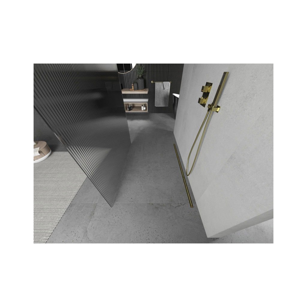 Mexen Kioto, Masa de dus Walk-In 120 x 200 cm, sticla 8 mm cu model nervuri, profil auriu, 800-120-002-50-09
