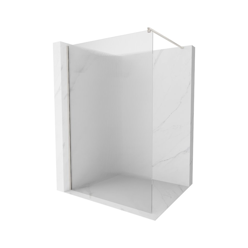 Mexen Kioto, Masă de duș Walk-In 120 x 200 cm, sticlă 8 mm cu model nervuri, profil din oțel periat, 800-120-101-97-09
